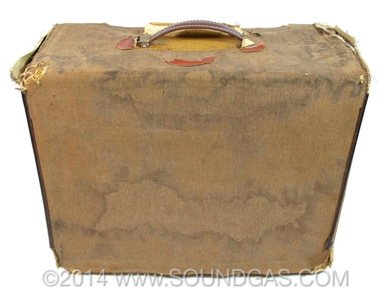 There's general wear and loss of tweed on most corners, plus numerous cigarette burns on top and one on the left rear side.