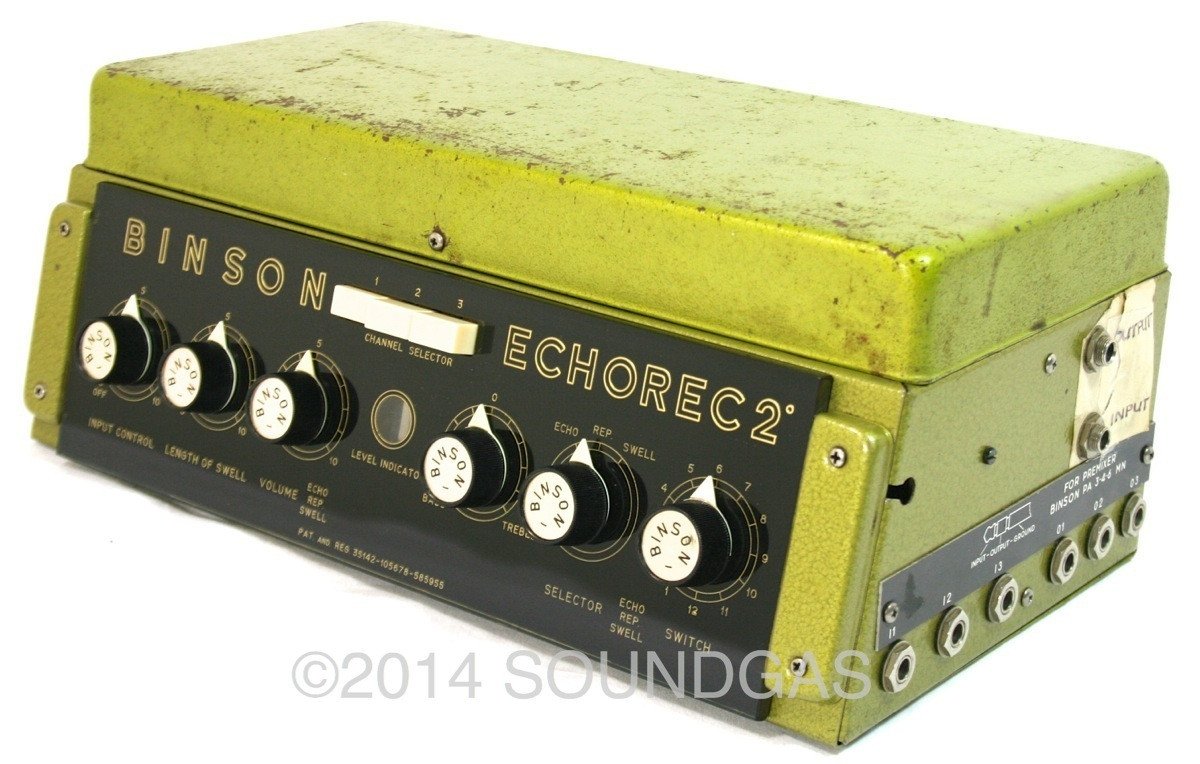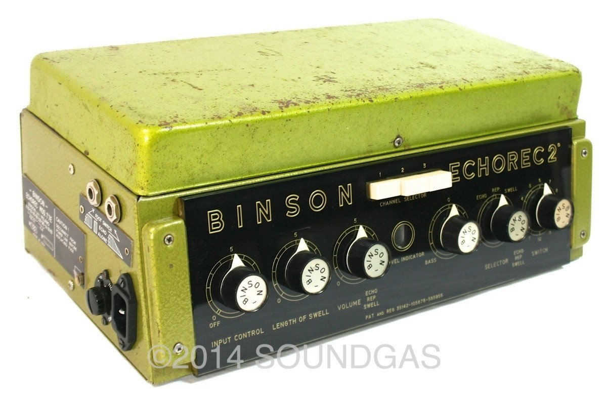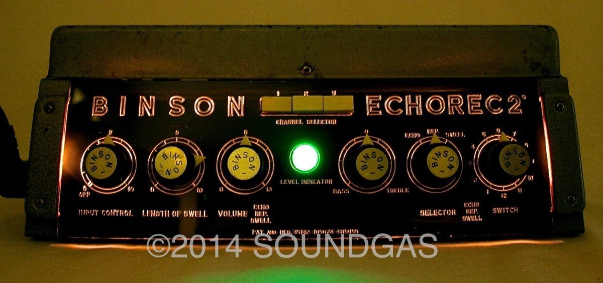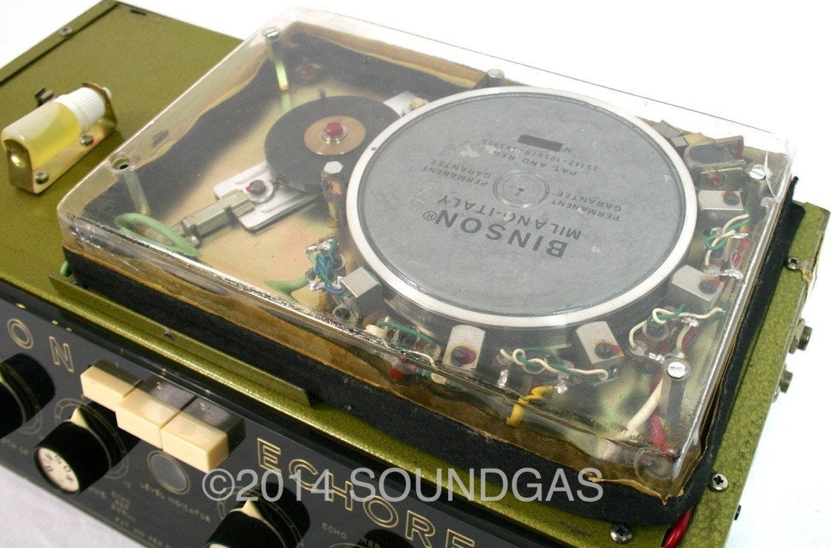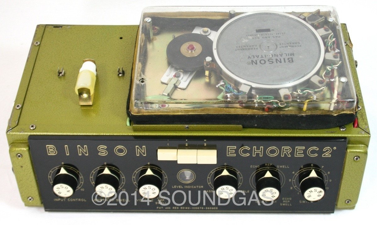 The motor starts well and the disc spins smoothly and quietly (some machines can require a nudge to get started if they've not been used for many months). It will go into gentle self-oscillation if required (this can be adjusted via the internal trimpot) and is capable of all sorts of cosmic noises - Binsons do tend to encourage experimental noise-mongering. The repeats are not hifi - this is after all 50 year-old technology - if you want perfect repeats, buy a digital delay. It sounds fantastic and inspires creativity when you play through it - being a good quality valve unit, it also sounds wonderful as a pre-amp.