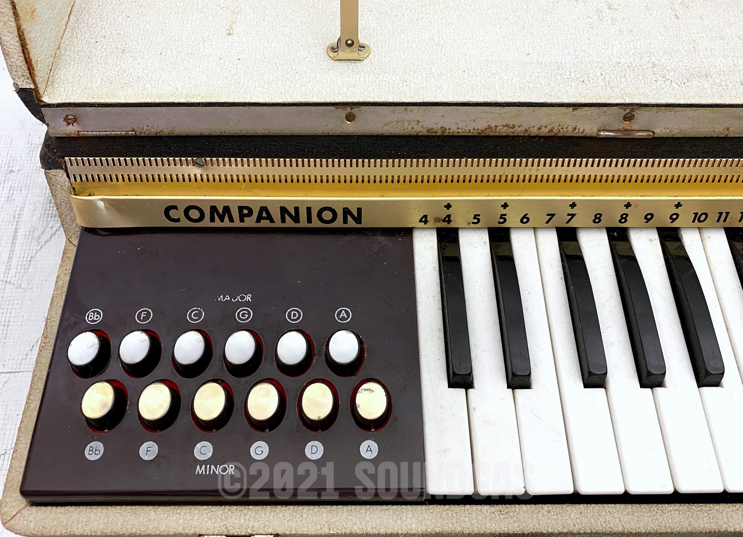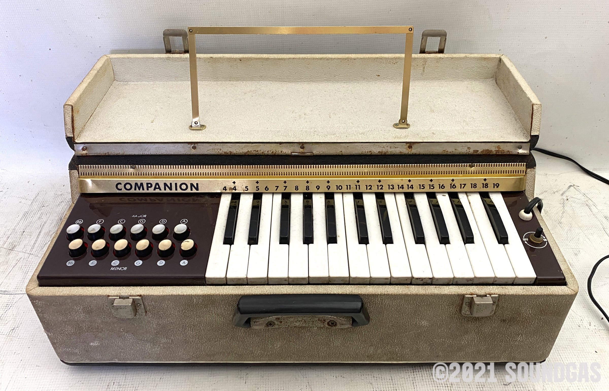 Auction for an early 60s reed organ. The chord sounds in particular have an instant charm and appeal. Mostly working and certainly useable as it is.