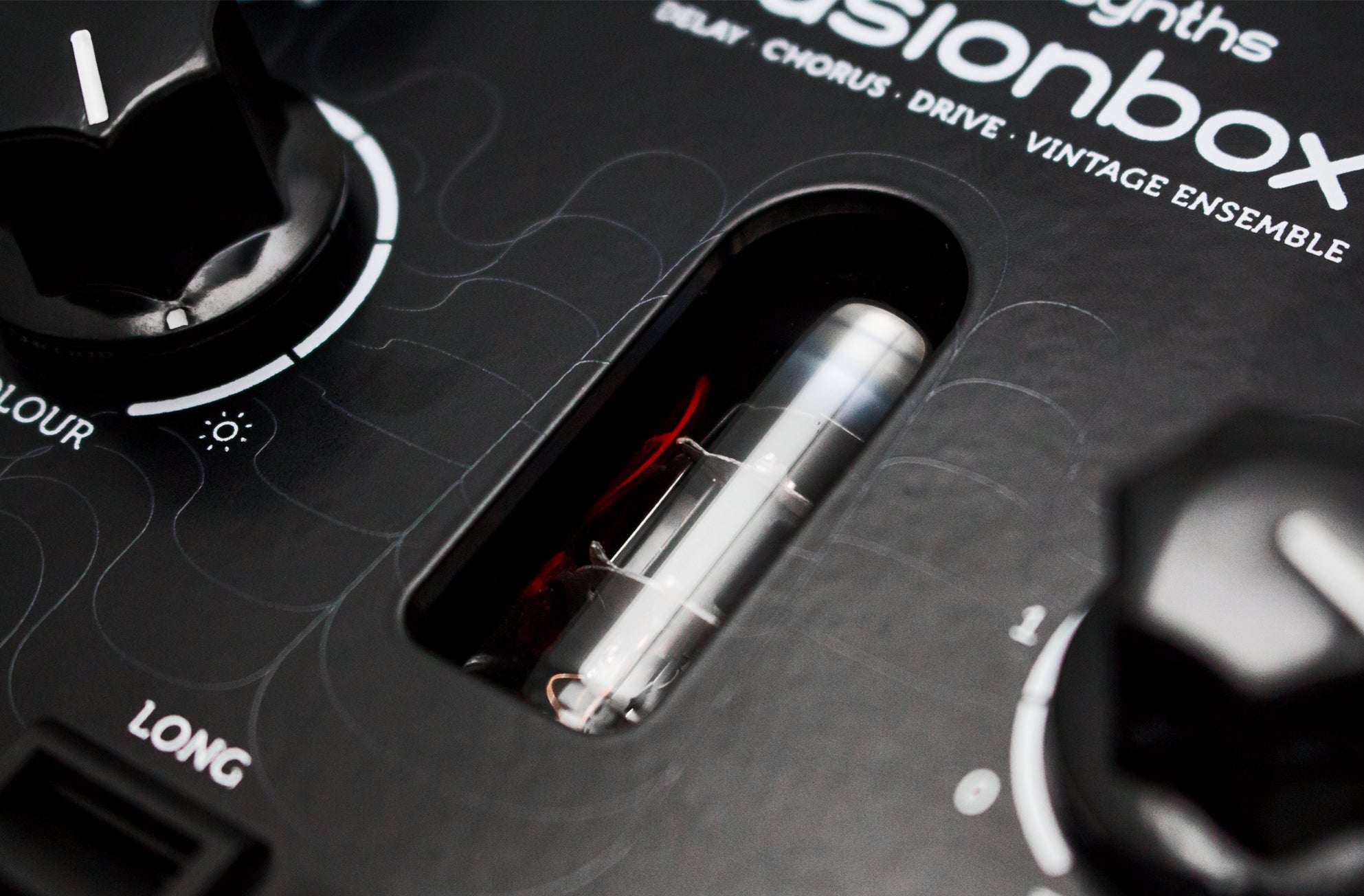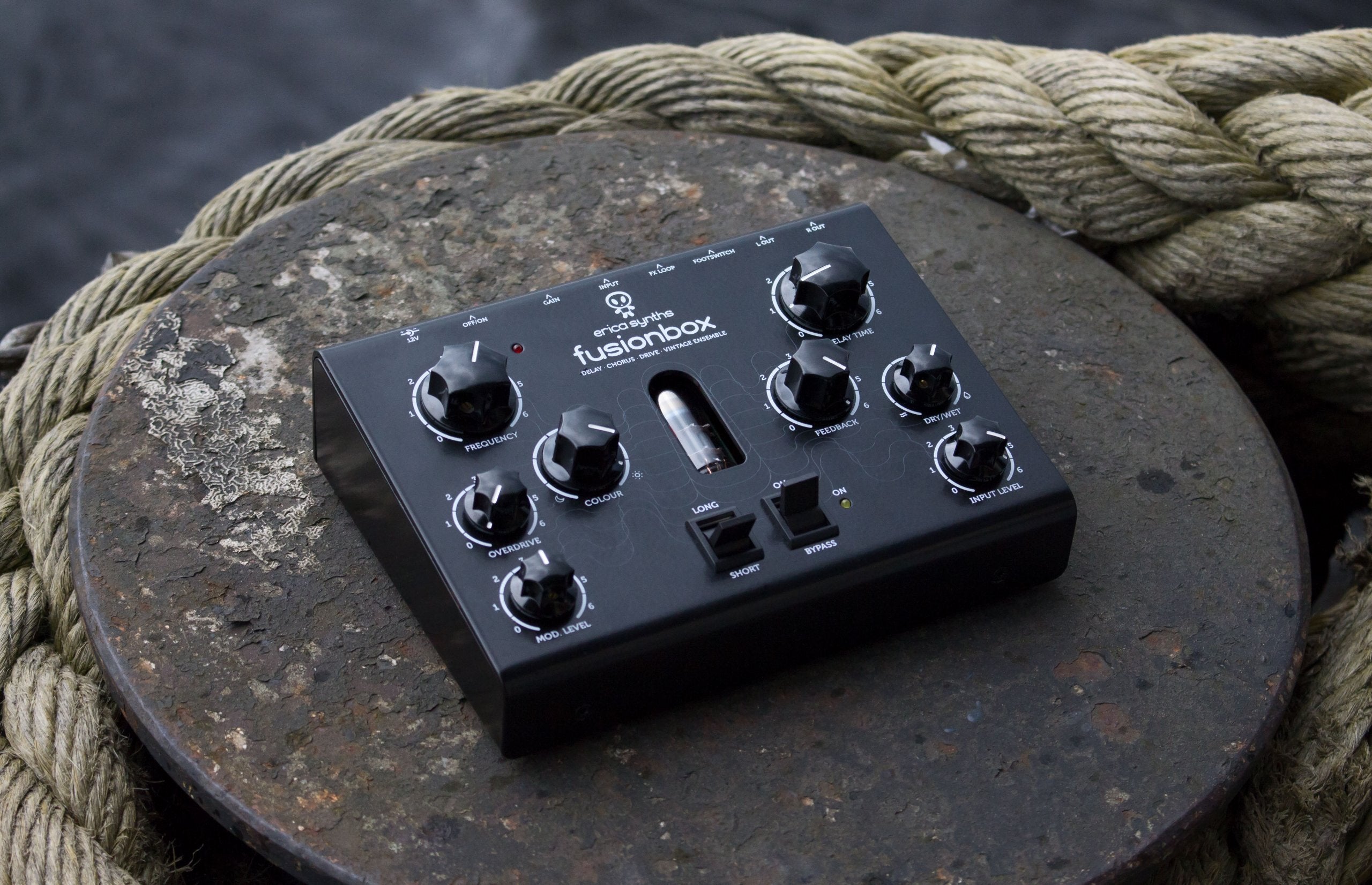Fusion Box lowpass filtering is fully adjustable from none to extreme for a really deep bass sound. A special feature, not found in other contemporary stompboxes or effect units, is the Vintage Stereo Ensemble.