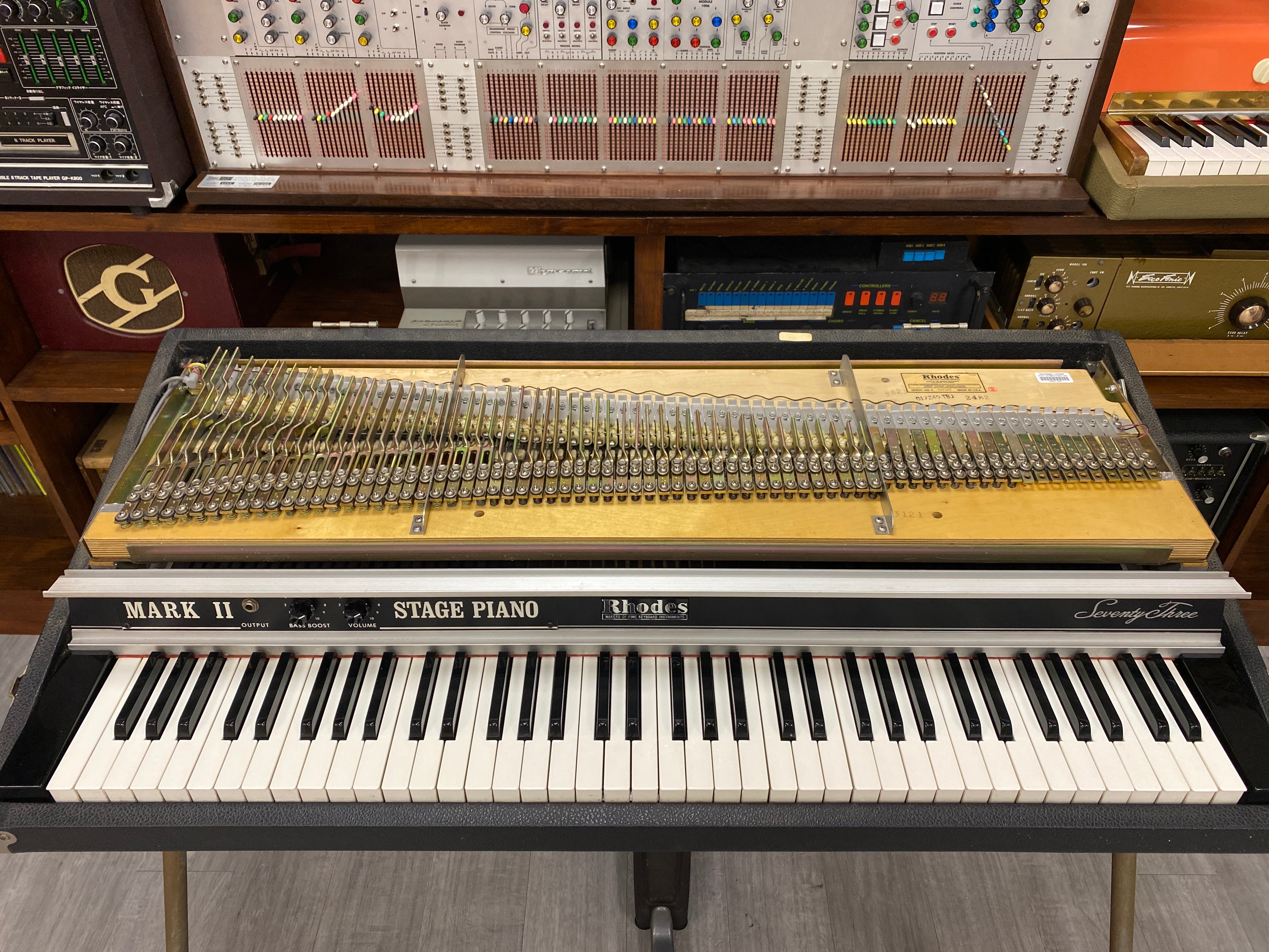This mark 2 Rhodes dates from 1982 and has just had a full and deep overhaul/refurb from our favourite electric piano expert.
