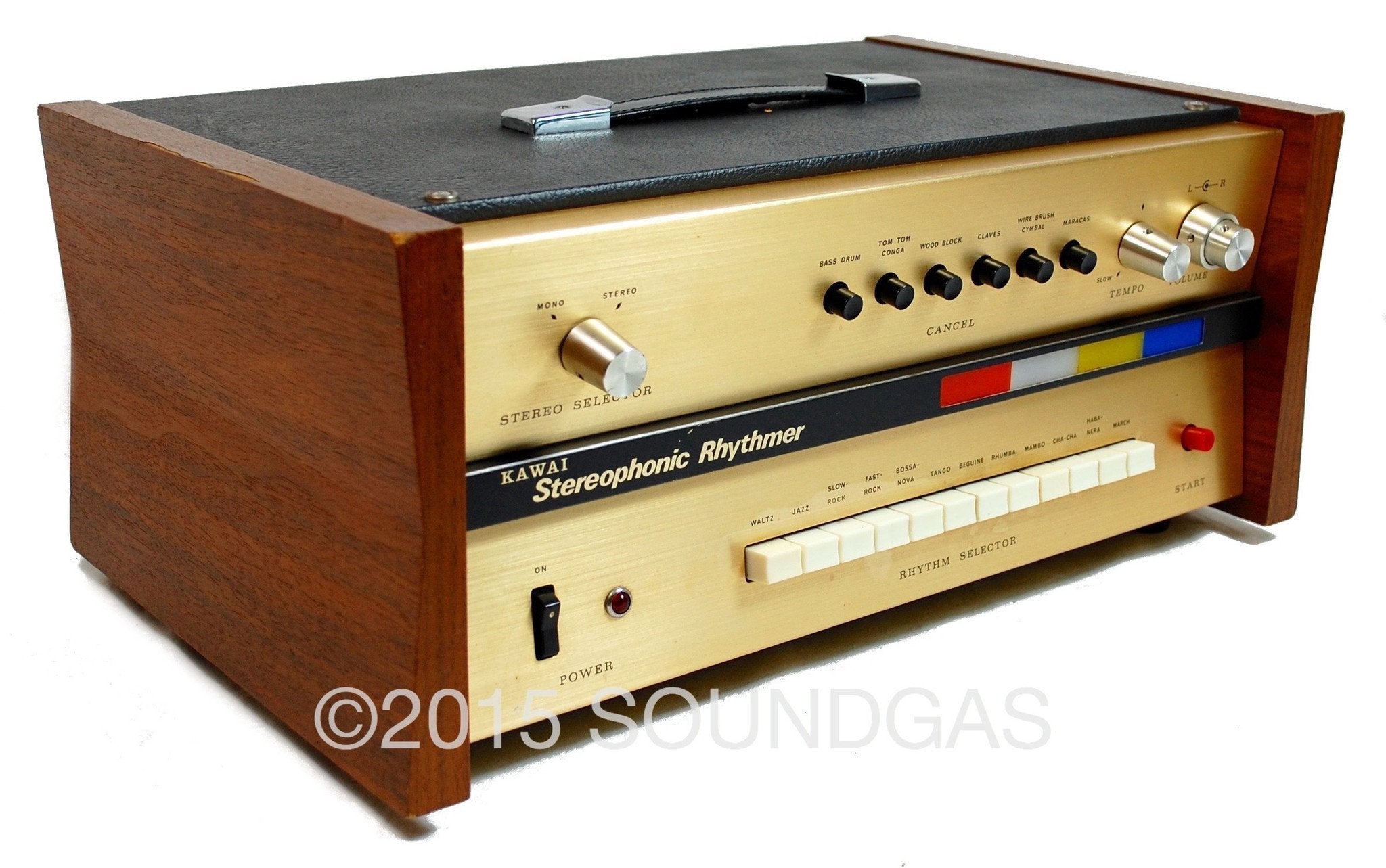 This is a Kawai Stereophonic Rhythmer, an early-mid 70s stereo drum machine (some sounds pan left to right).