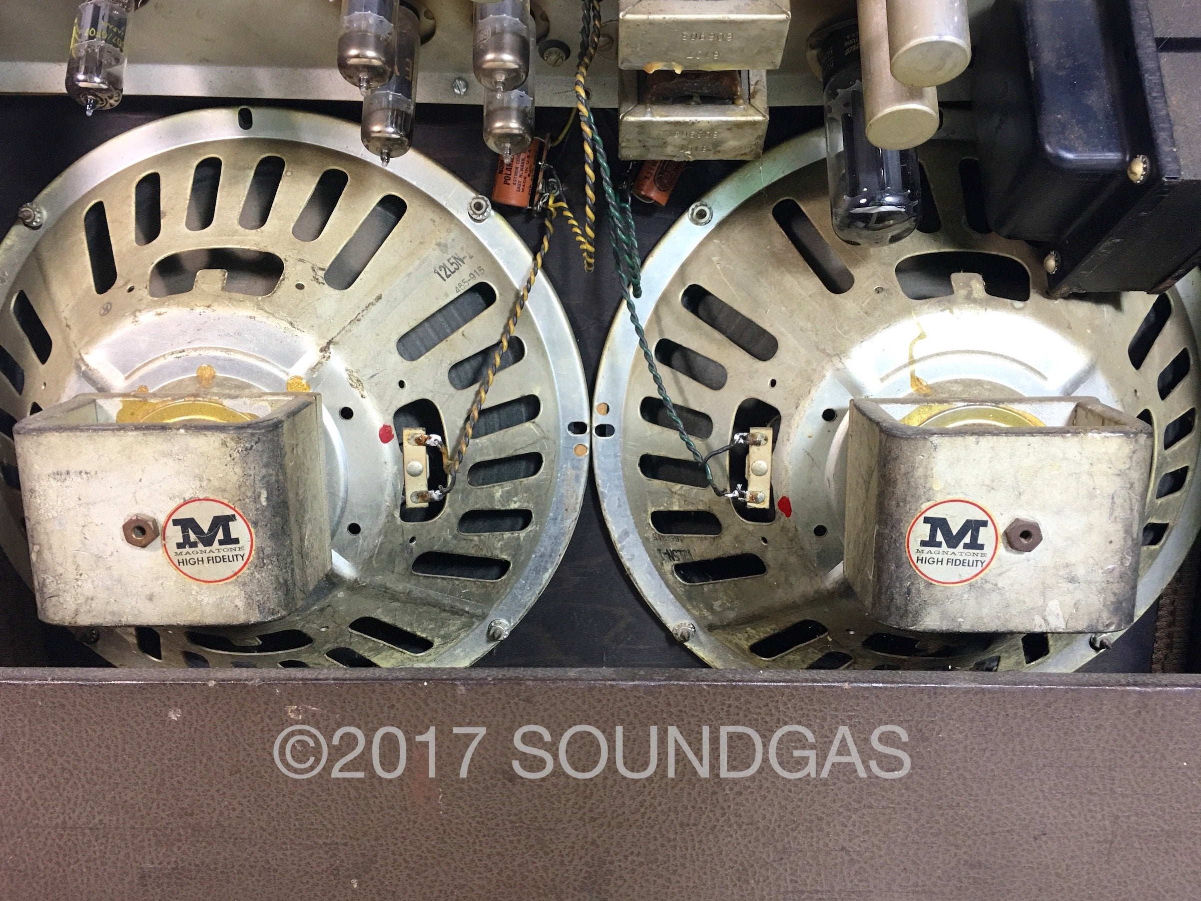 The cosmetic condition of this amp is scruffy but original. It's missing some of the original brown finish, but this is one for the player rather than collector. There are scuffs and scrapes to the finish and areas where it's down to bare wood. The major internal parts are original with the exception of the the stereo tweeters which we had to replace. See photos for more info on cosmetic condition.