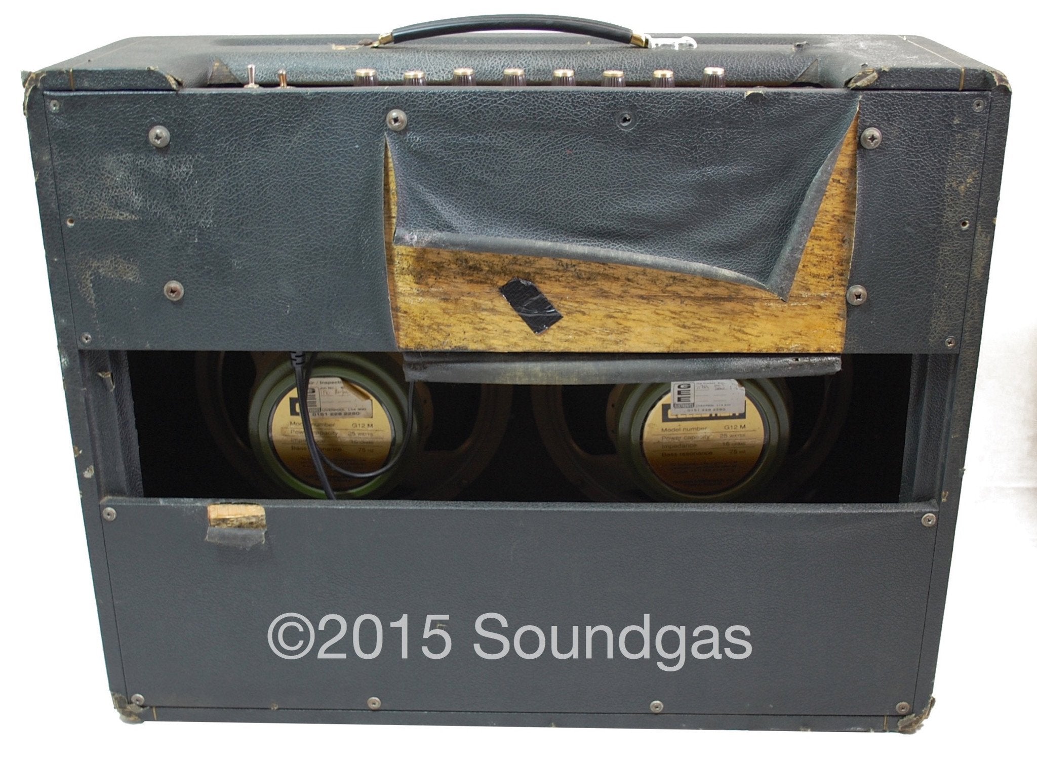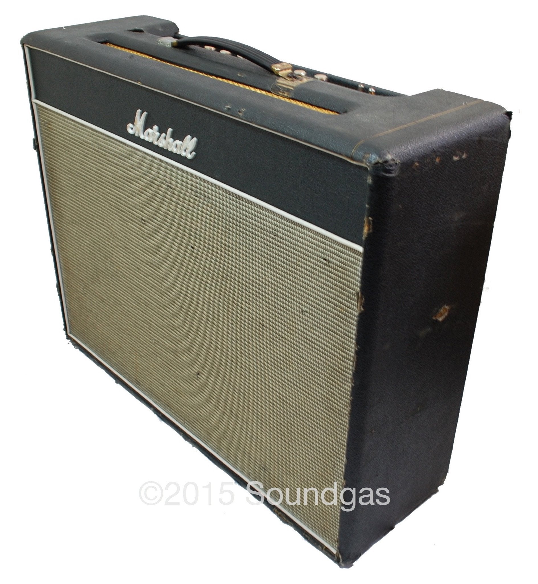 Please see the detailed photos to assess condition for yourself. There are scuffs and marks to the casing, marking and small tears on the front panel, plus a number of tears in the tolex including a large one on the rear. There is some discolouration to the plexi control panel. Handle missing brass covers.