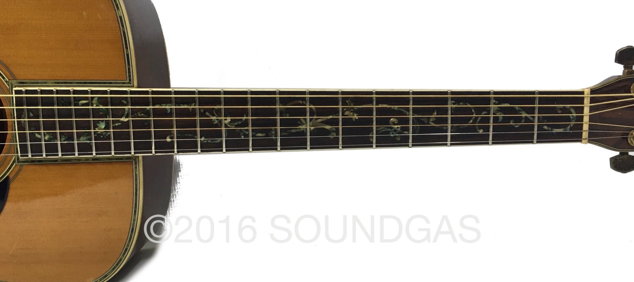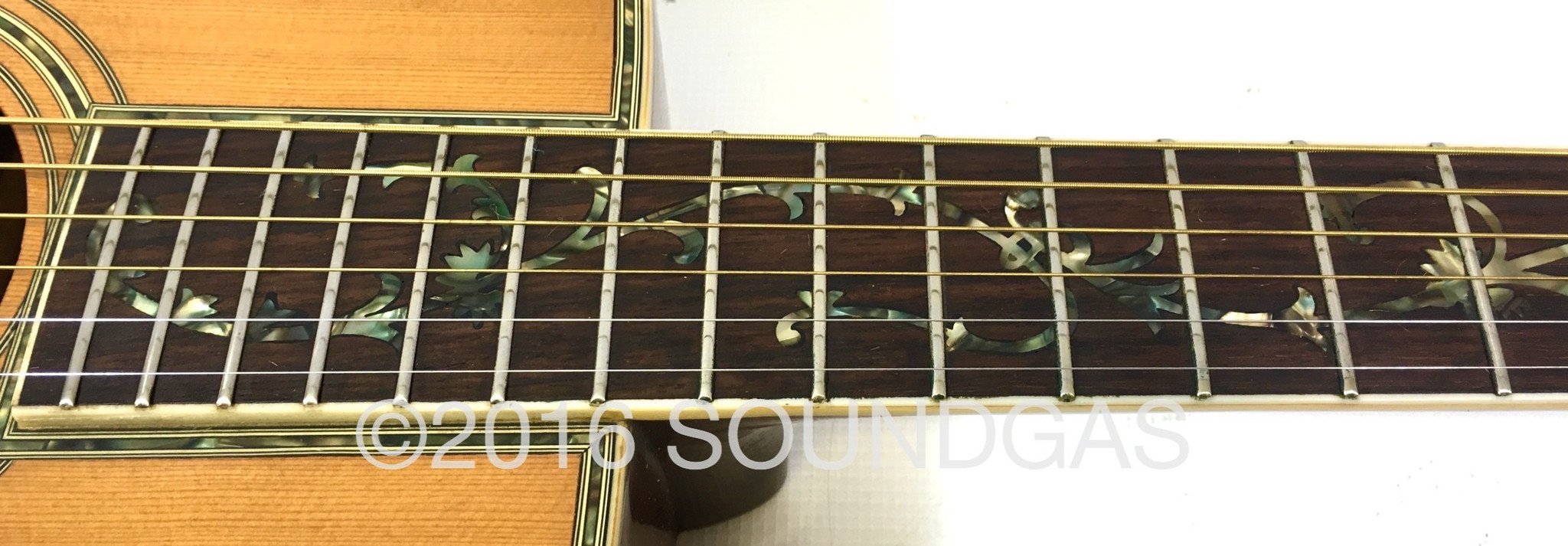 The build quality and attention to detail is very good indeed - Japanese guitars from this era can be superb and outclass their American counterparts. Tonally this one's all you'd hope for from a good vintage acoustic with quality woods that have had several decades to mature. The detailing is very well-executed and of a high quality - the 'Tree Of Life' fretboard is stunning. This guitar offers a lot of bang for your buck - give me a well-made vintage acoustic over a new guitar at a similar price point any day. Comes complete with case.