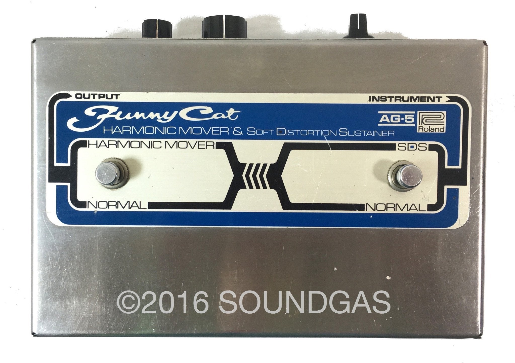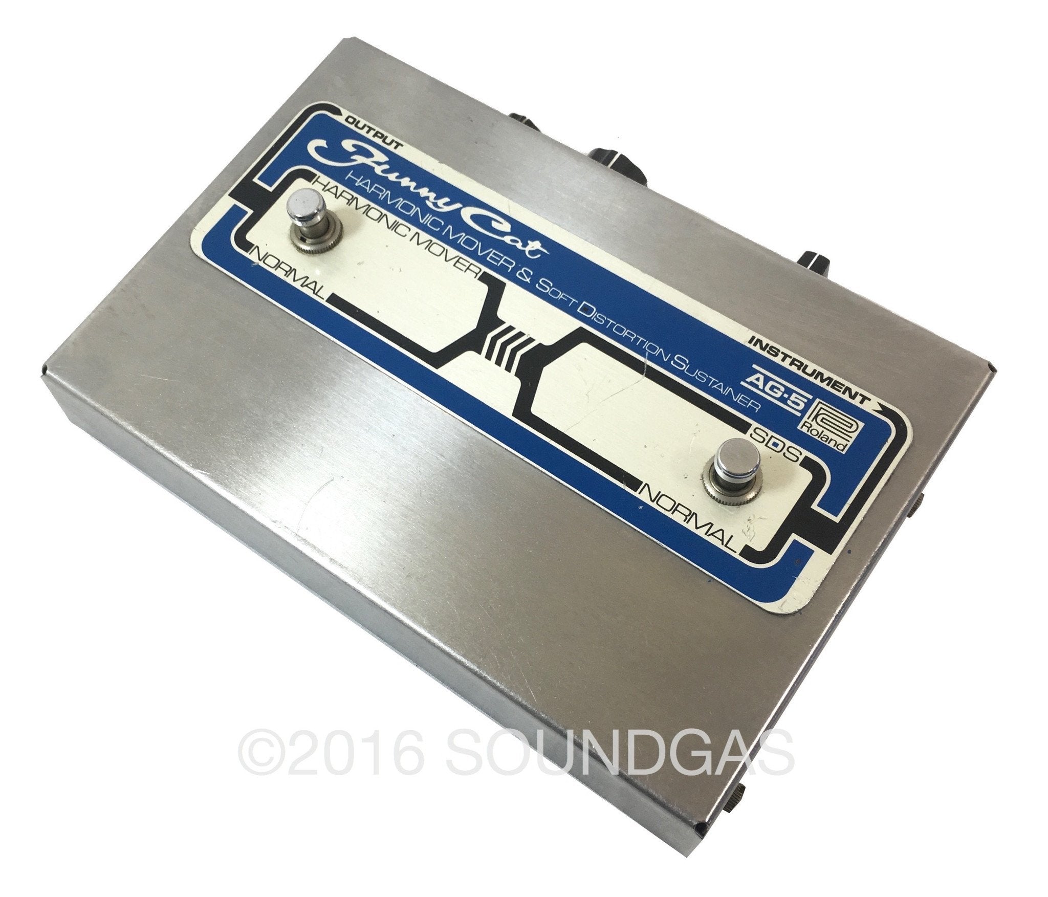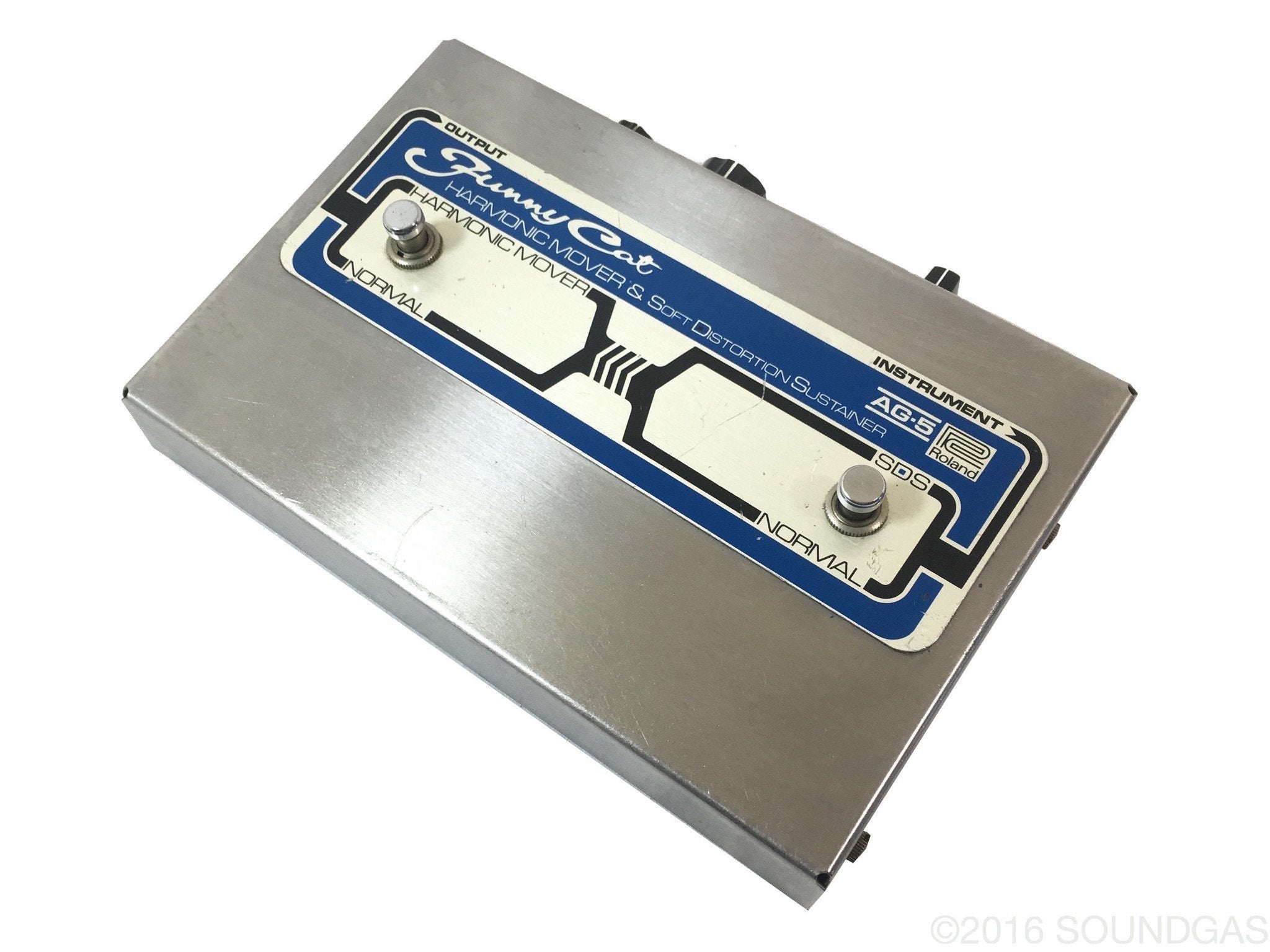 "Rare effects pedal from (most likely the mid to late) 70s. It is hard to describe the sound the AG-5 Harmonic Mover makes -- kind of a strange -- eerie sound. The SDS section makes for a soft distortion. It is very similar to the infamous harmonic pedal that is a sustain/distortion/filter effect which was made famous by Steve Albini. This effect really is in a category of its own and must be heard. It is a true filter with several different settings."