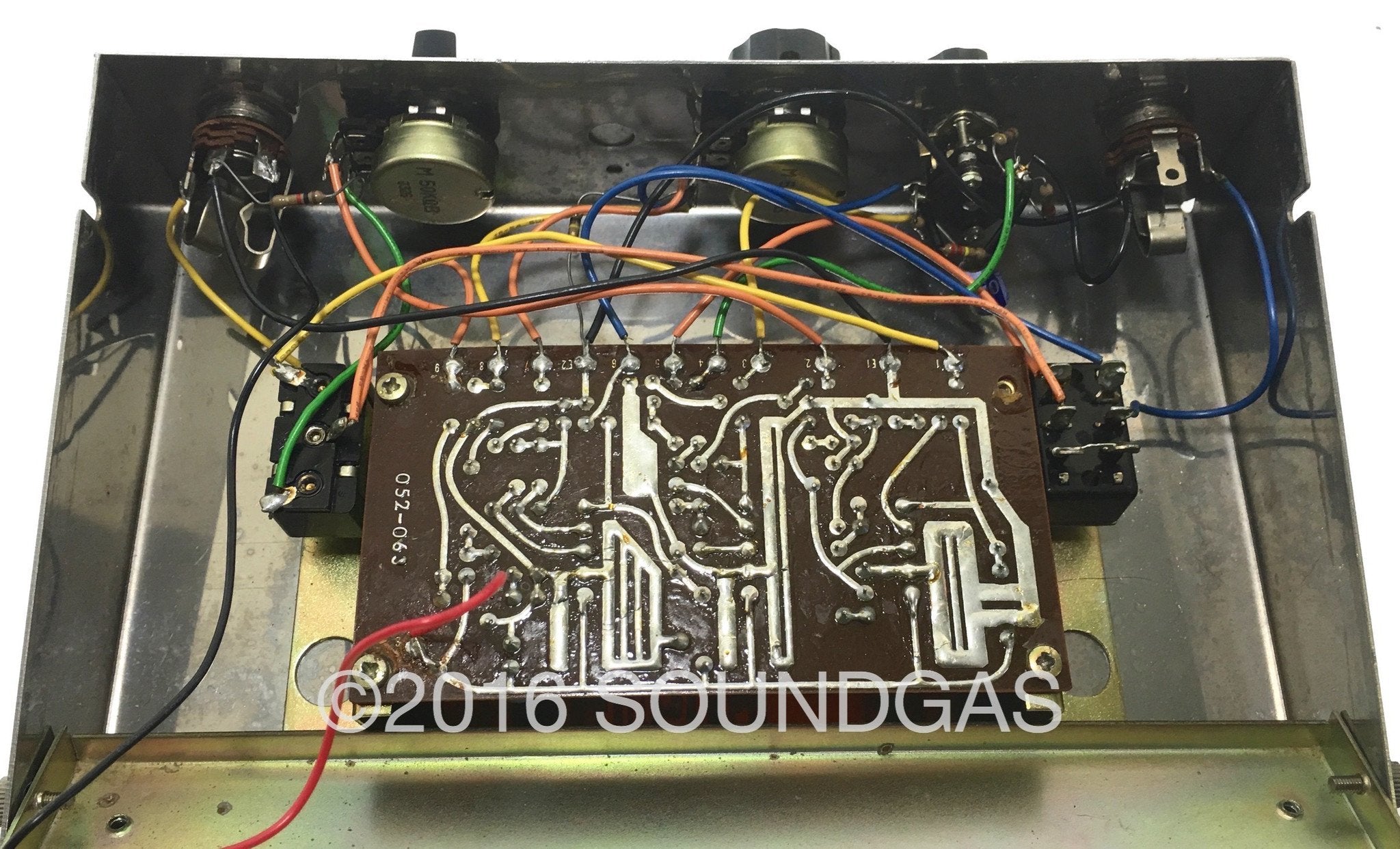 Has scuffs and scratches to the casing as you would expect plus some oxidation of the jack sockets. One knob is has been replaced.