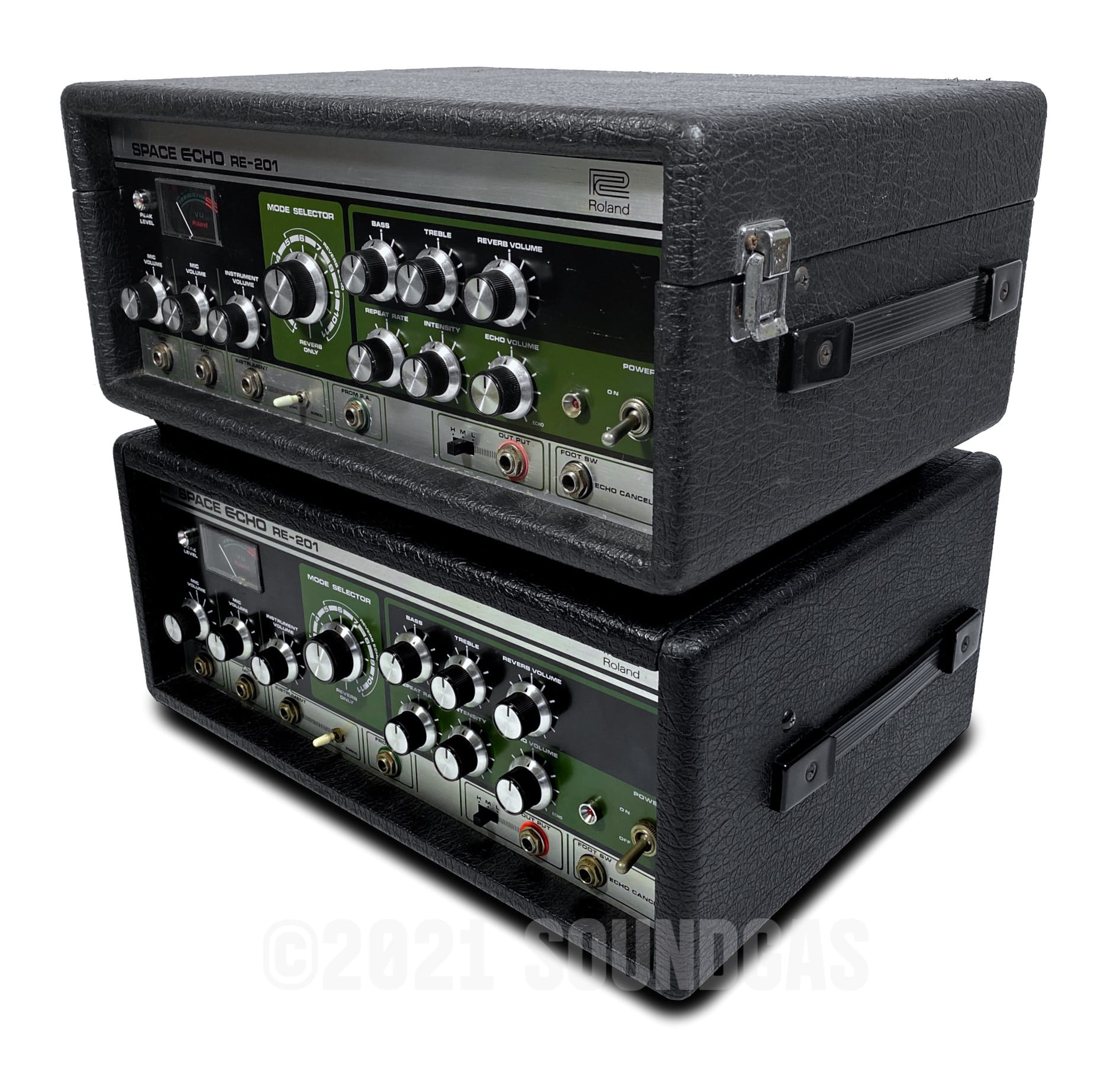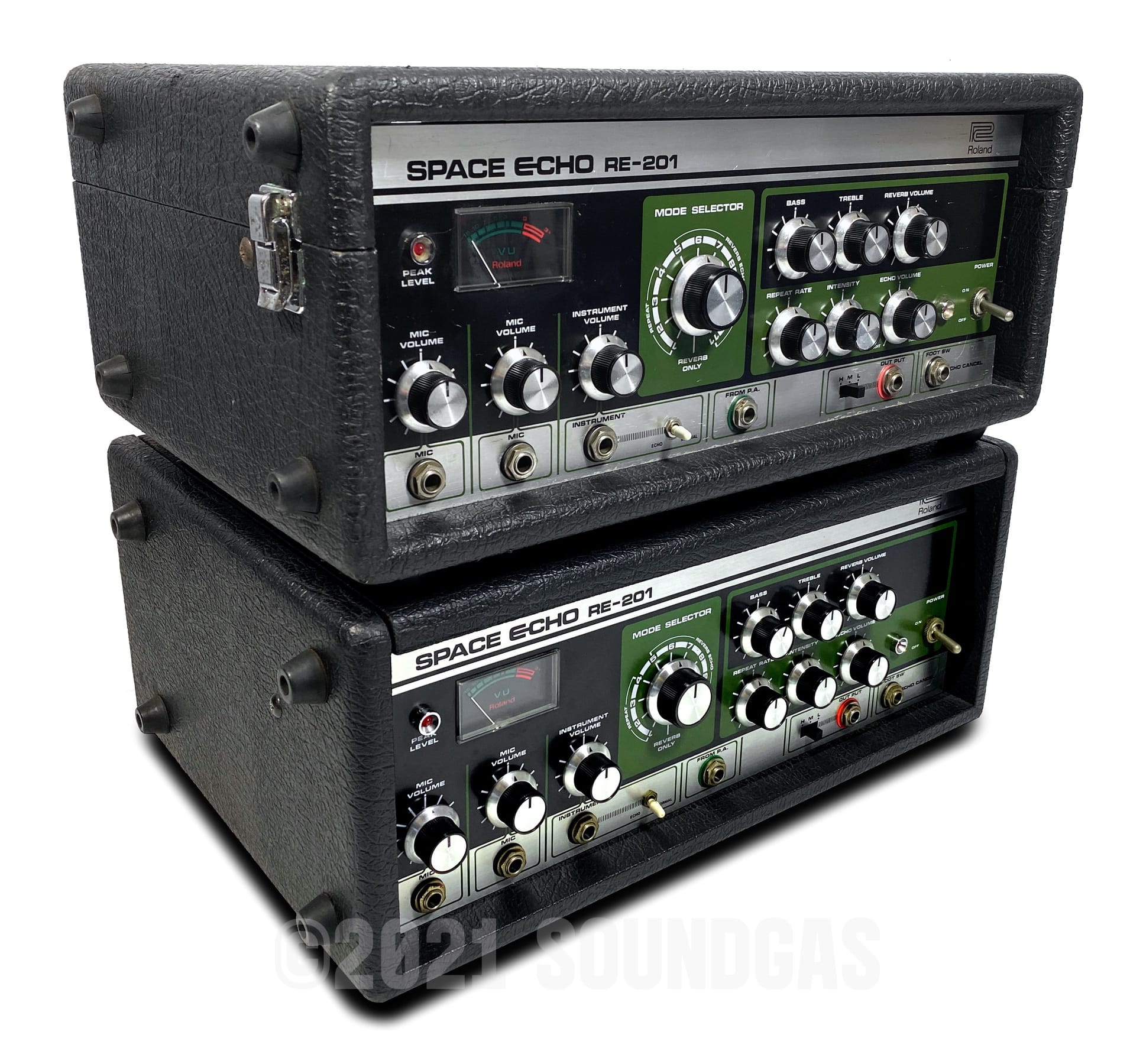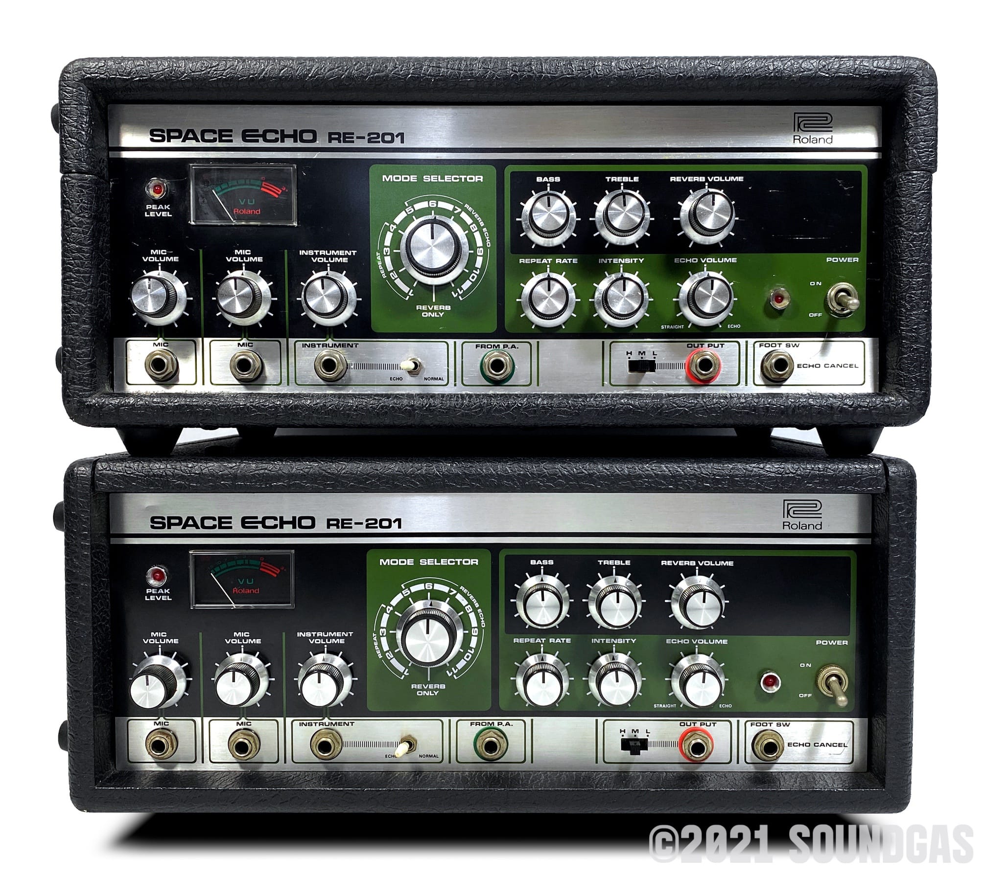 To select and set up two RE-201s that will run well together for stereo use requires exponentially more time than simply servicing two machines. We need a selection of prepared unsold echoes to choose from to begin with (which does not often happen). The variations in components and age over many years' (and four factories) production makes for a surprisingly wide range of performance between machines that all carry the RE-201 name.