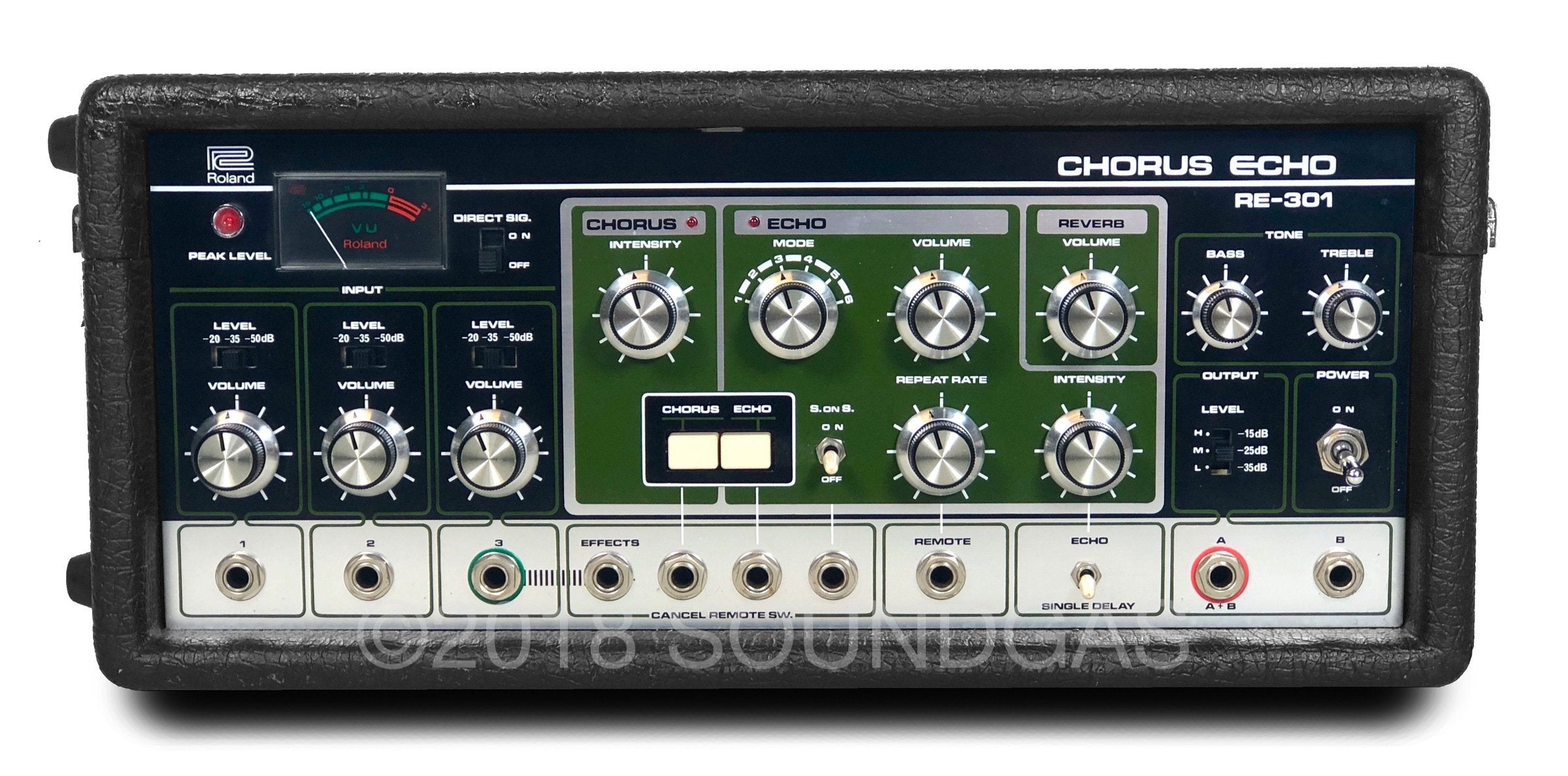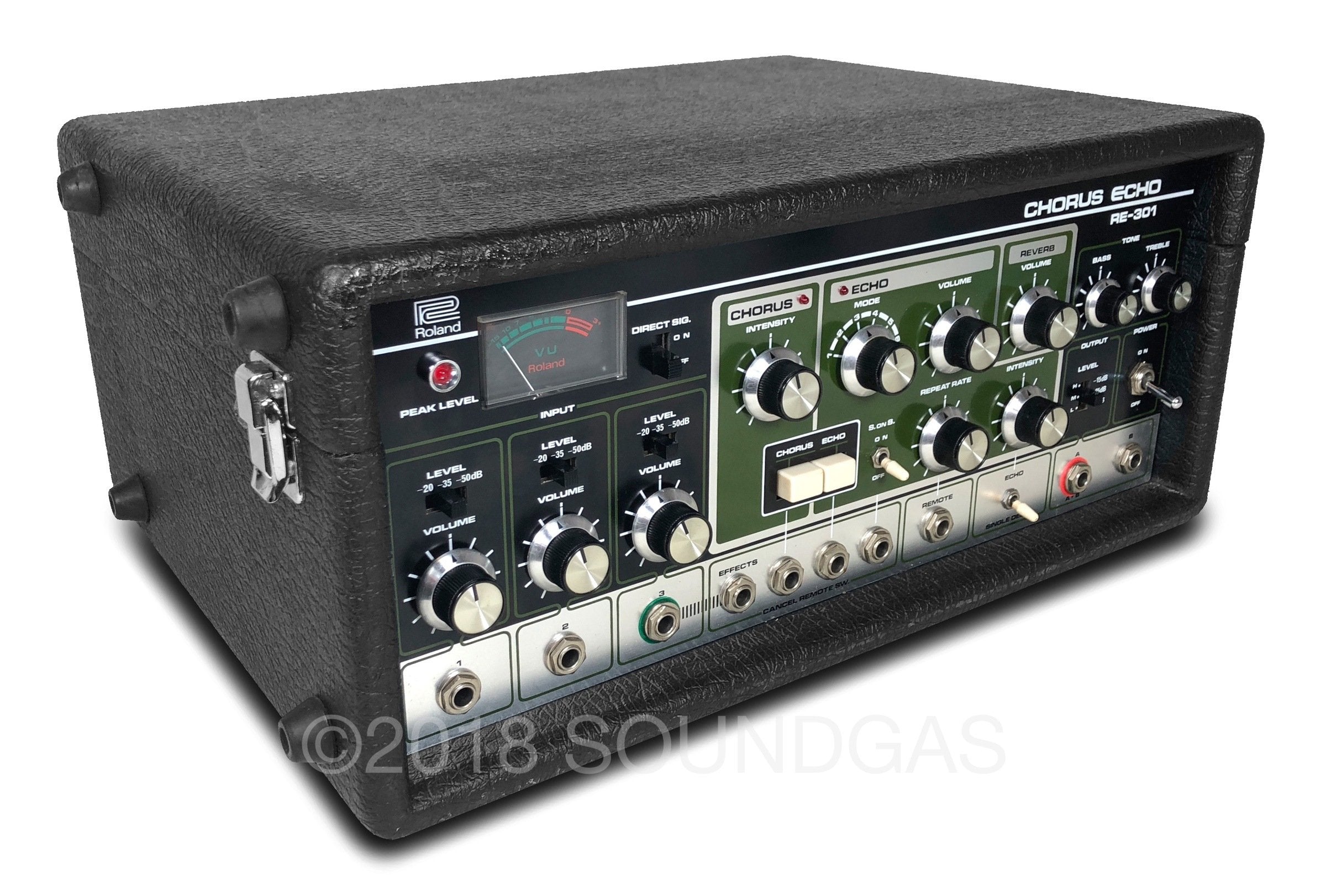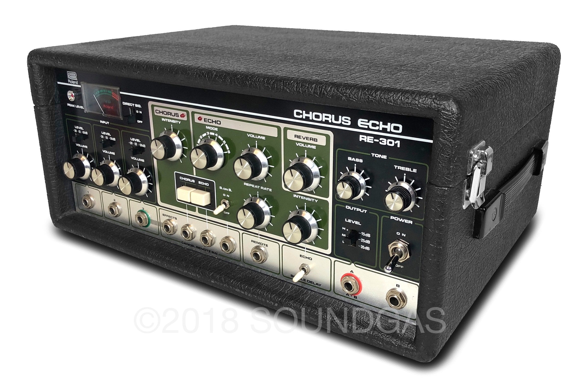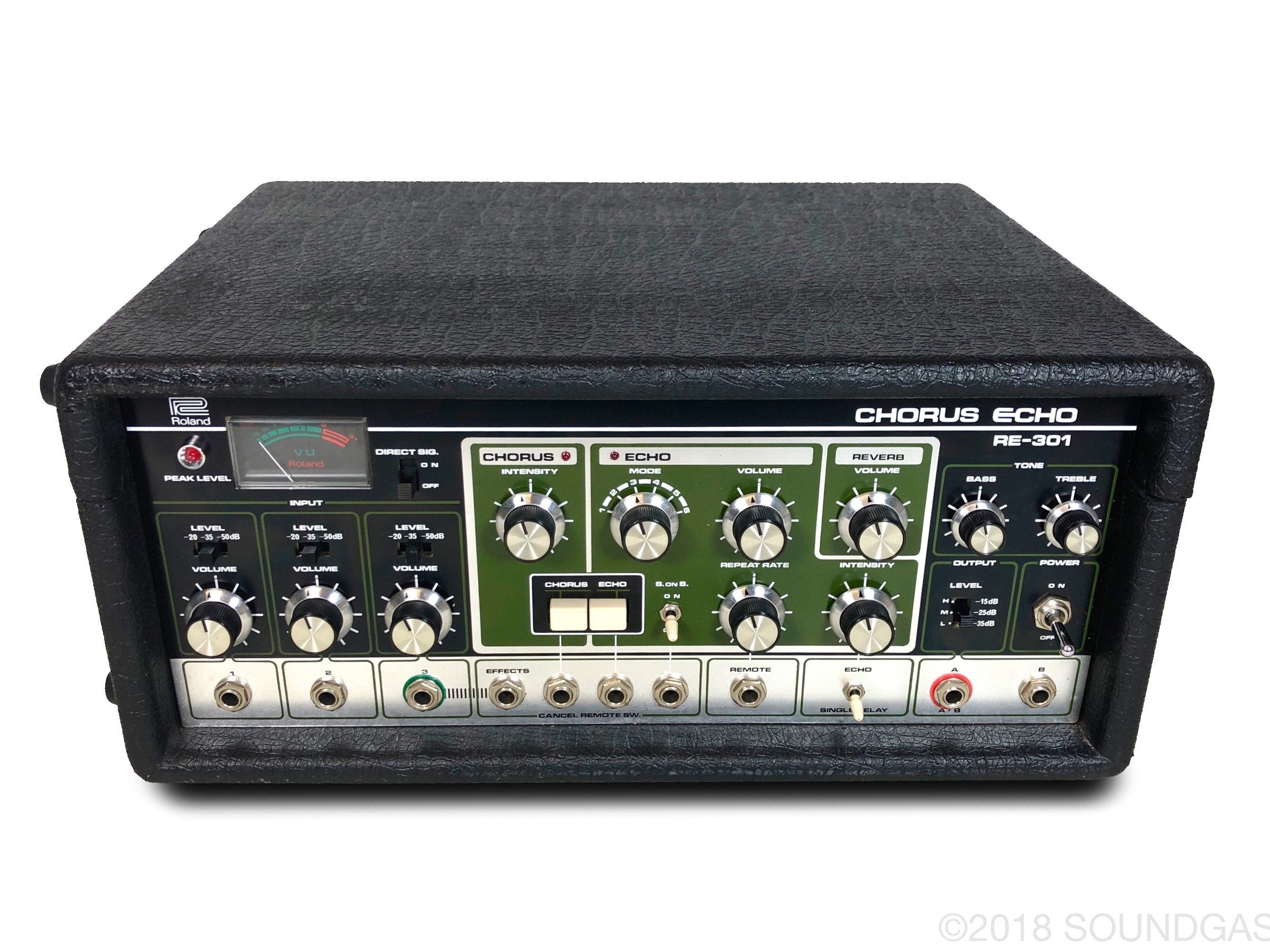 The RE-301 is a great piece of kit: the multi-head echo combinations, Accutronics powered spring reverb, Roland chorus and the Sound On Sound feature all add up to a classic piece of studio gear. A fine example of this iconic machine; Brian Setzer's favourite tape echo.