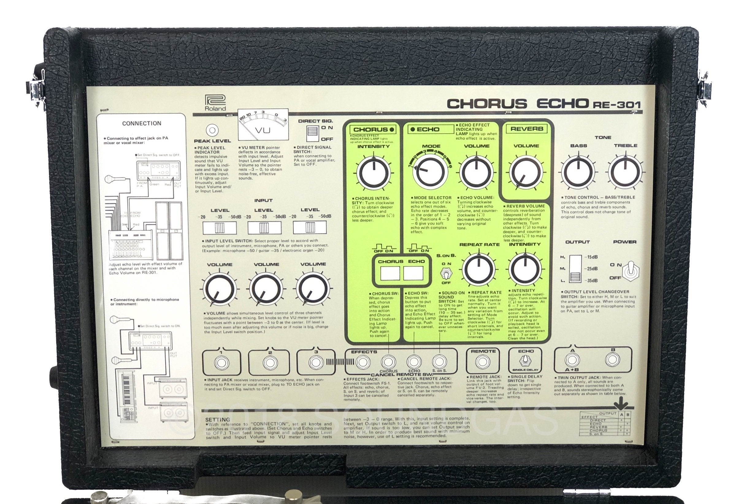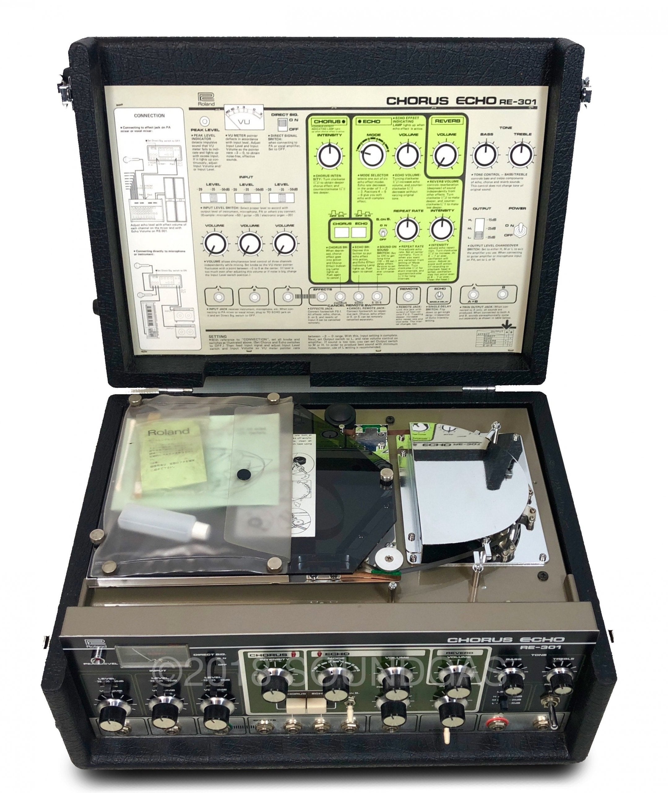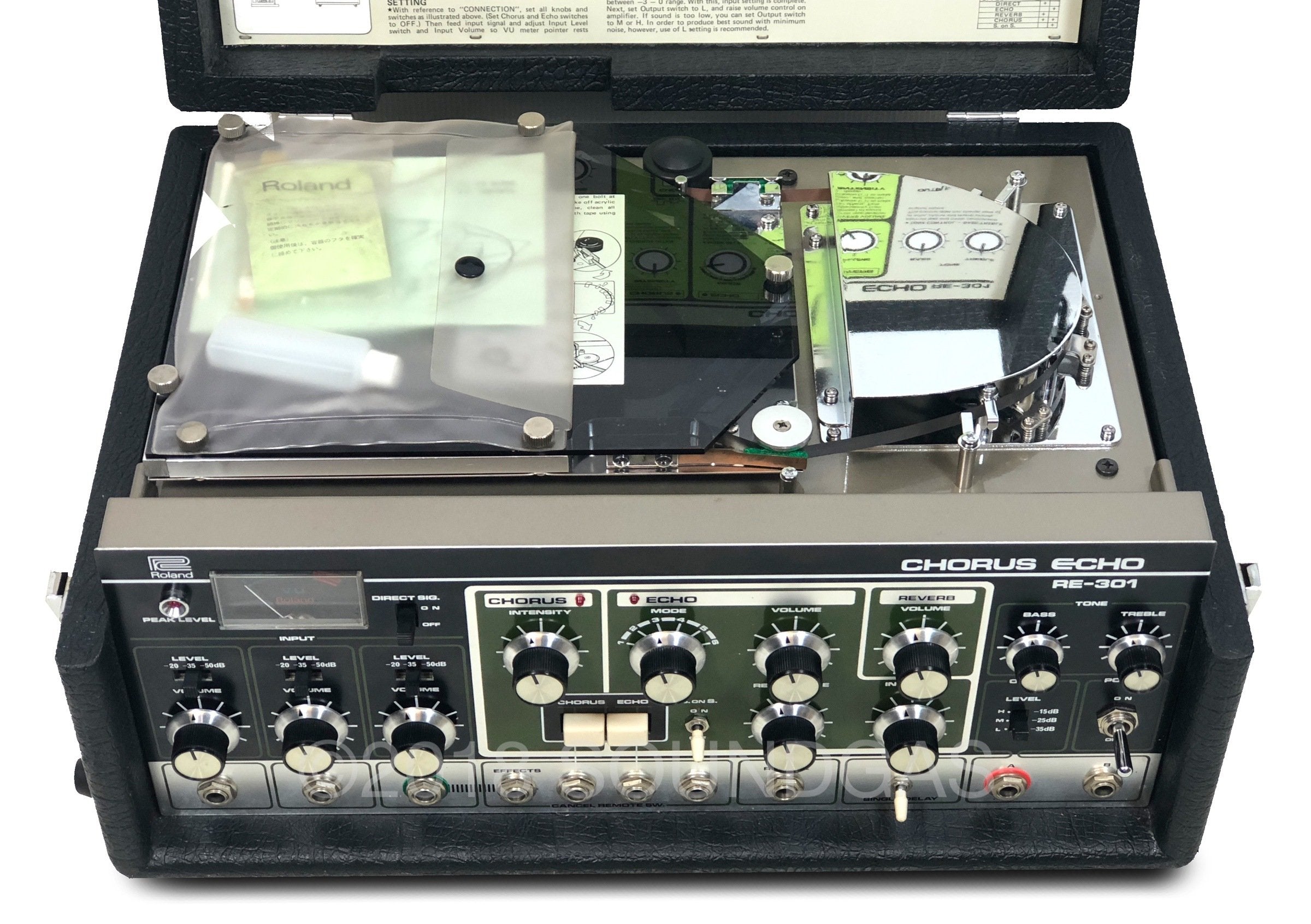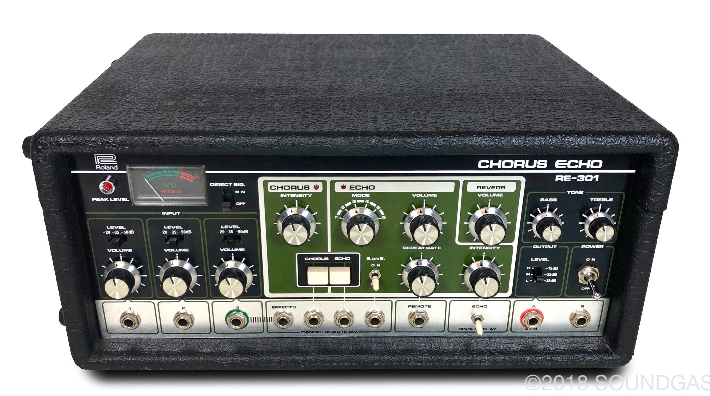 The RE-301 is a great piece of kit: the multi-head echo combinations, Accutronics powered spring reverb, Roland chorus and the Sound On Sound feature all add up to a classic piece of studio gear. A fine example of this iconic machine; Brian Setzer's favourite tape echo.