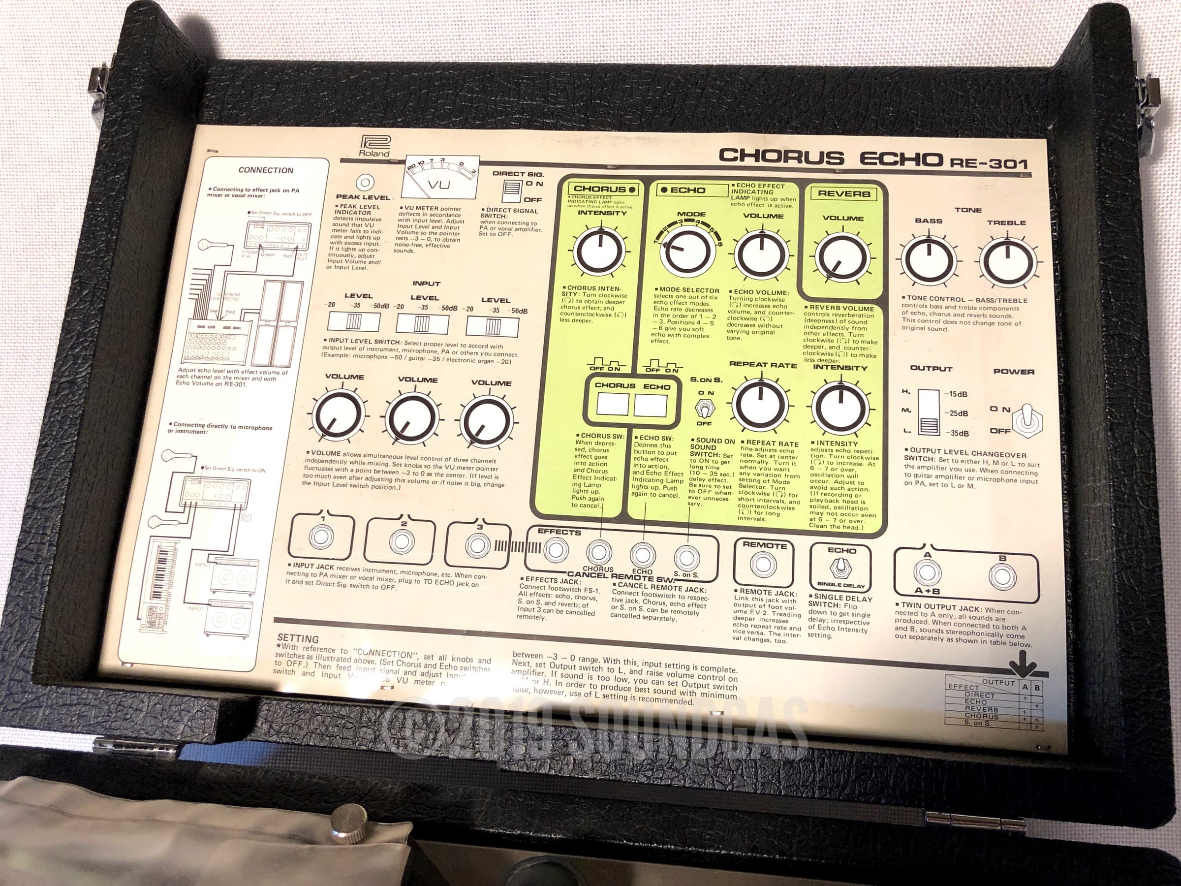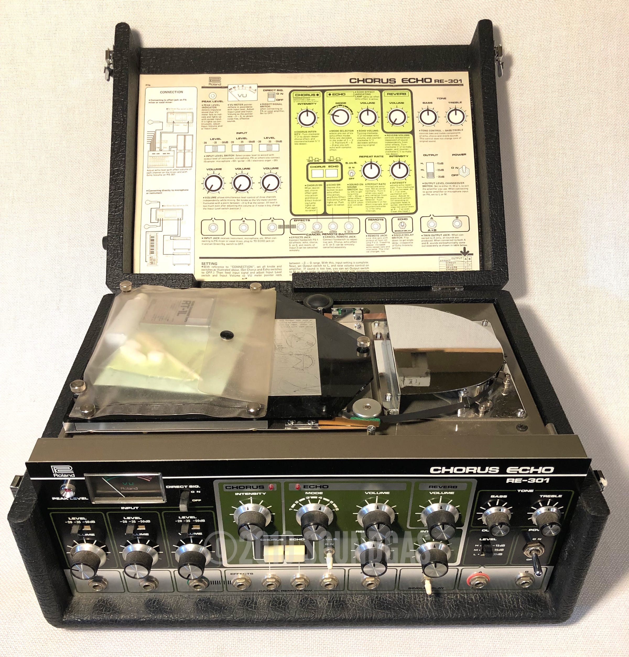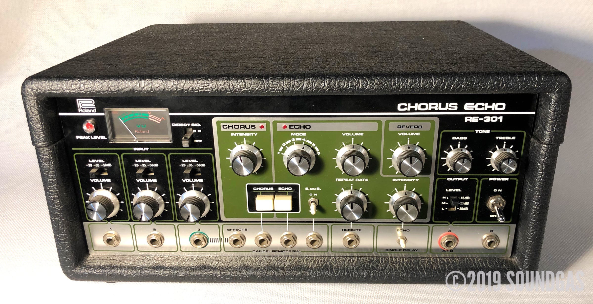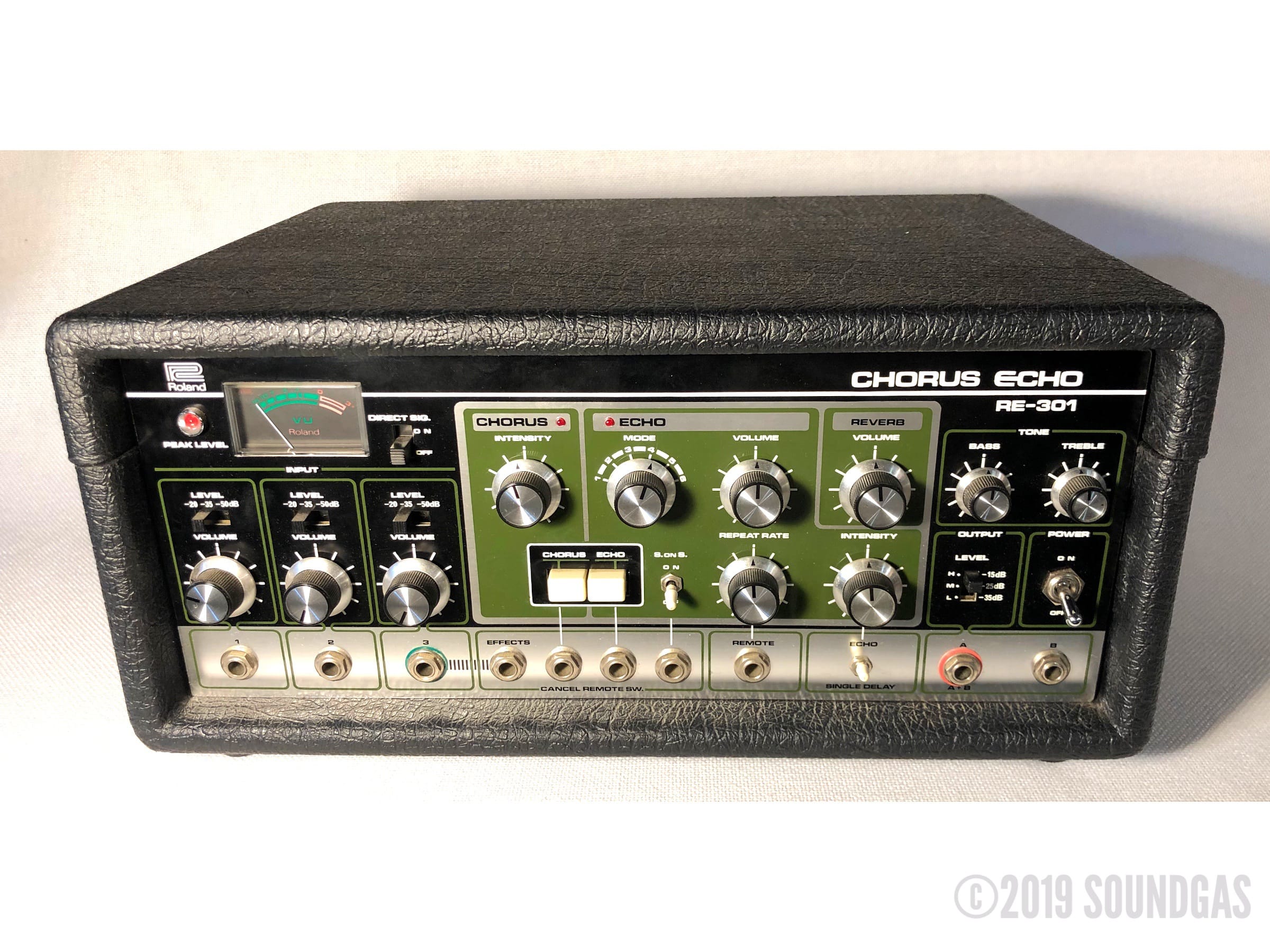 The RE-301 is a great piece of kit: the multi-head echo combinations, Accutronics powered spring reverb, Roland chorus and the Sound On Sound feature all add up to a classic piece of studio gear. A fine example of this iconic machine; Brian Setzer's favourite tape echo.