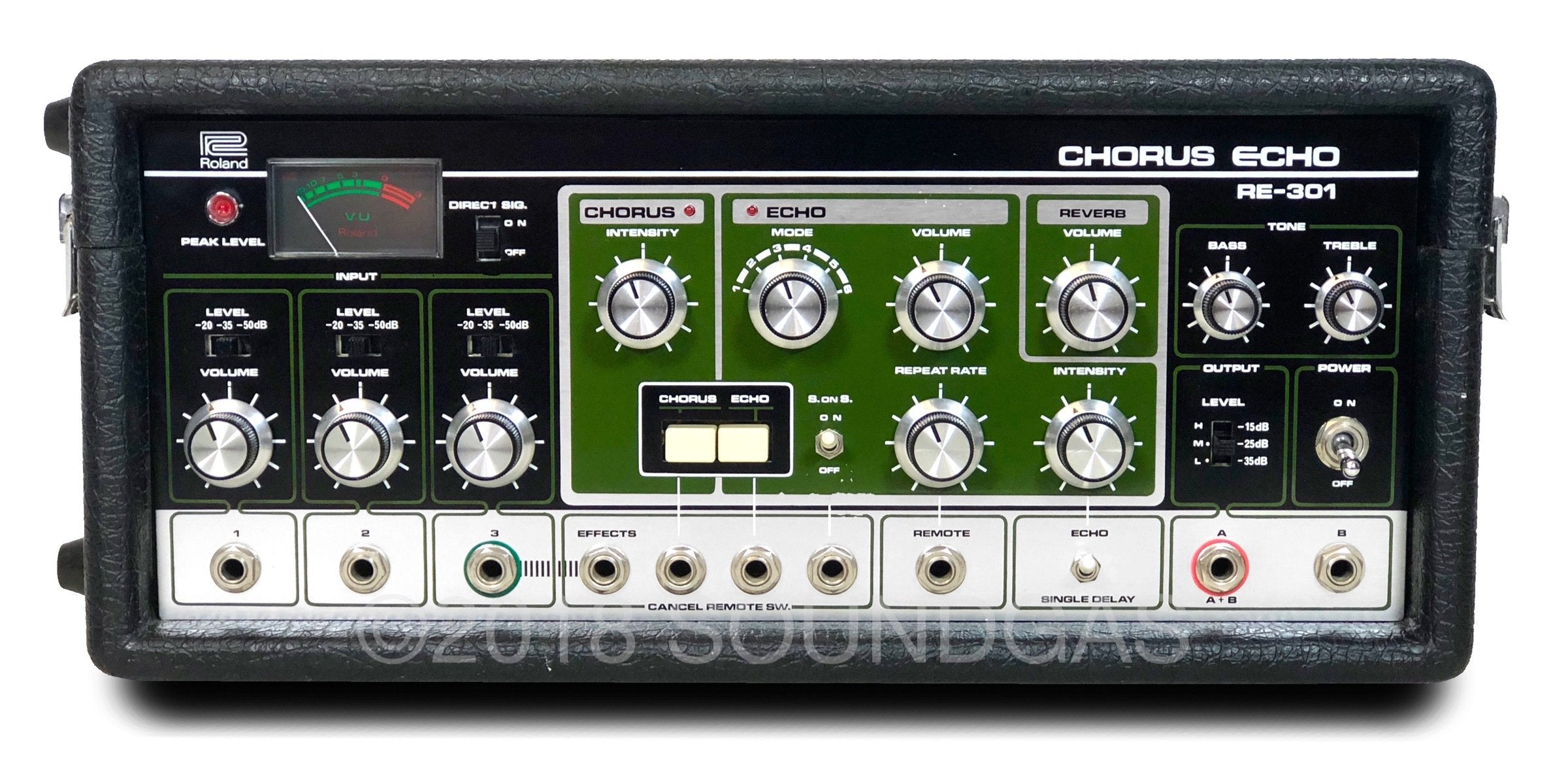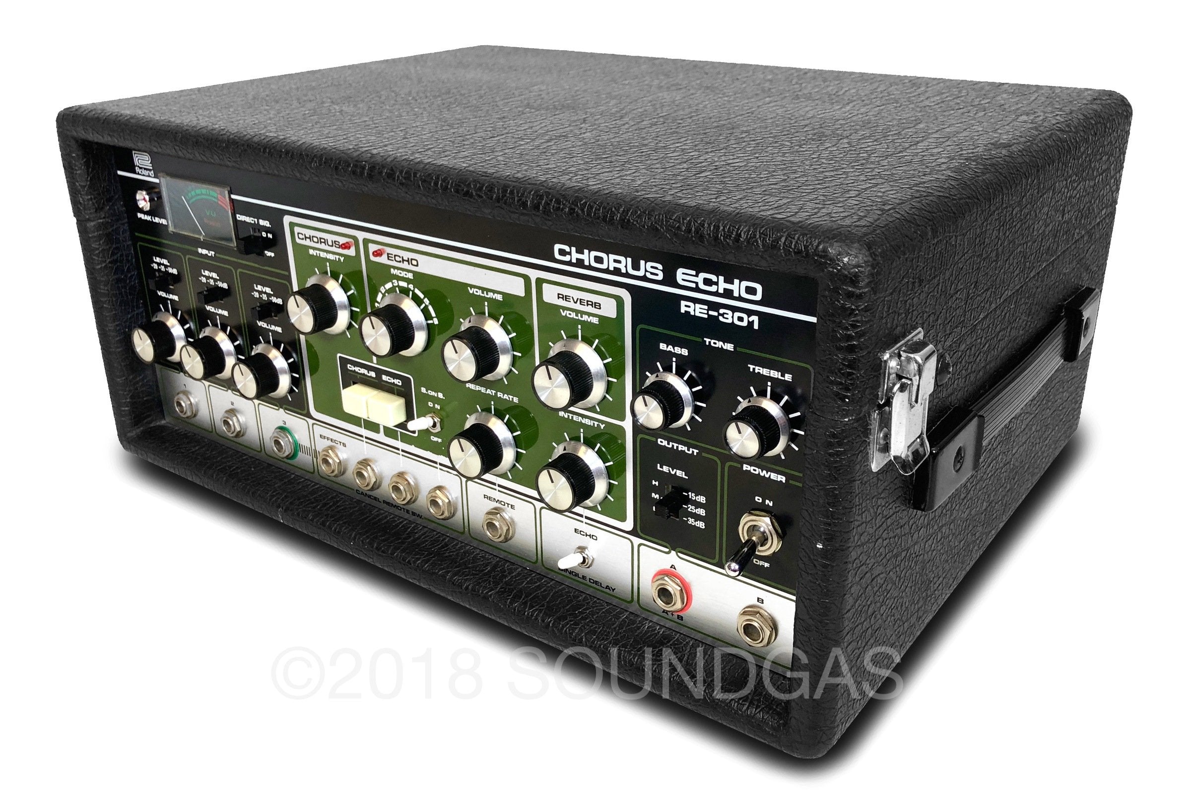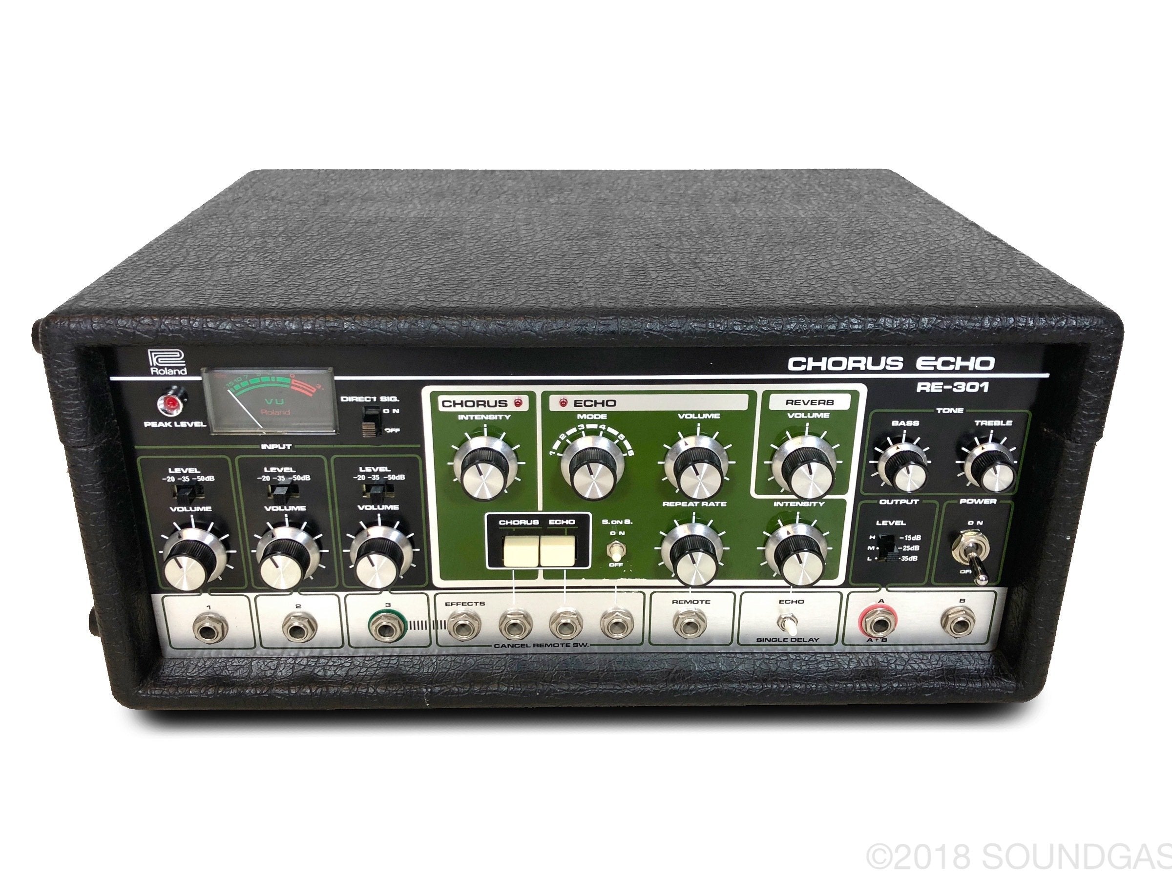 The RE-301 is a great piece of kit: the multi-head echo combinations, Accutronics powered spring reverb, Roland chorus and the Sound On Sound feature all add up to a classic piece of studio gear. A fine example of this iconic machine; Brian Setzer's favourite tape echo.