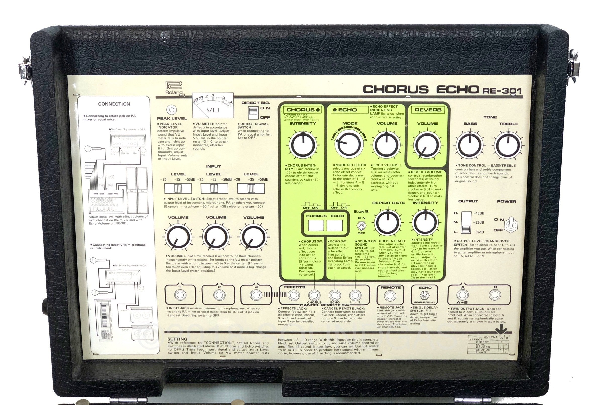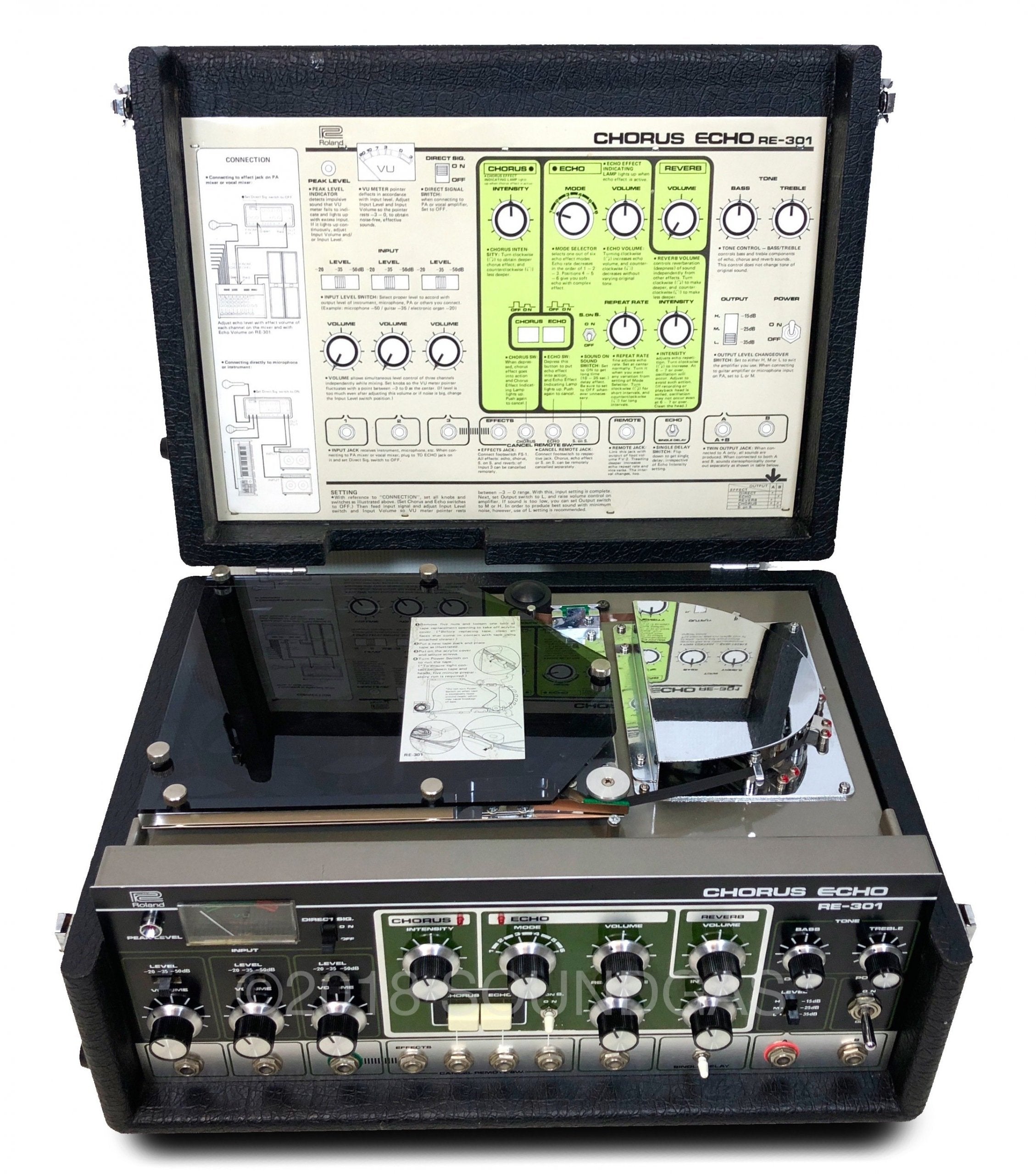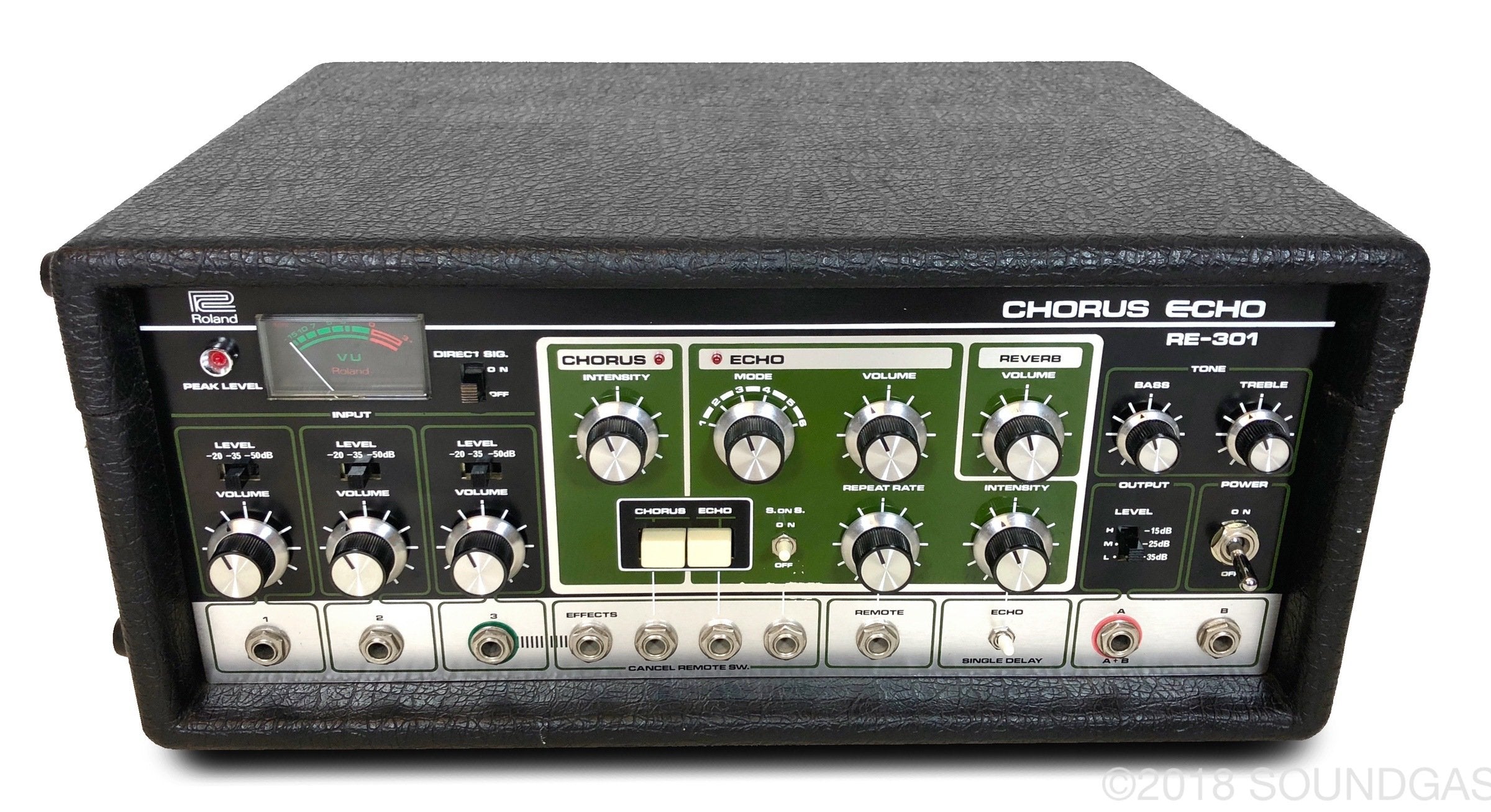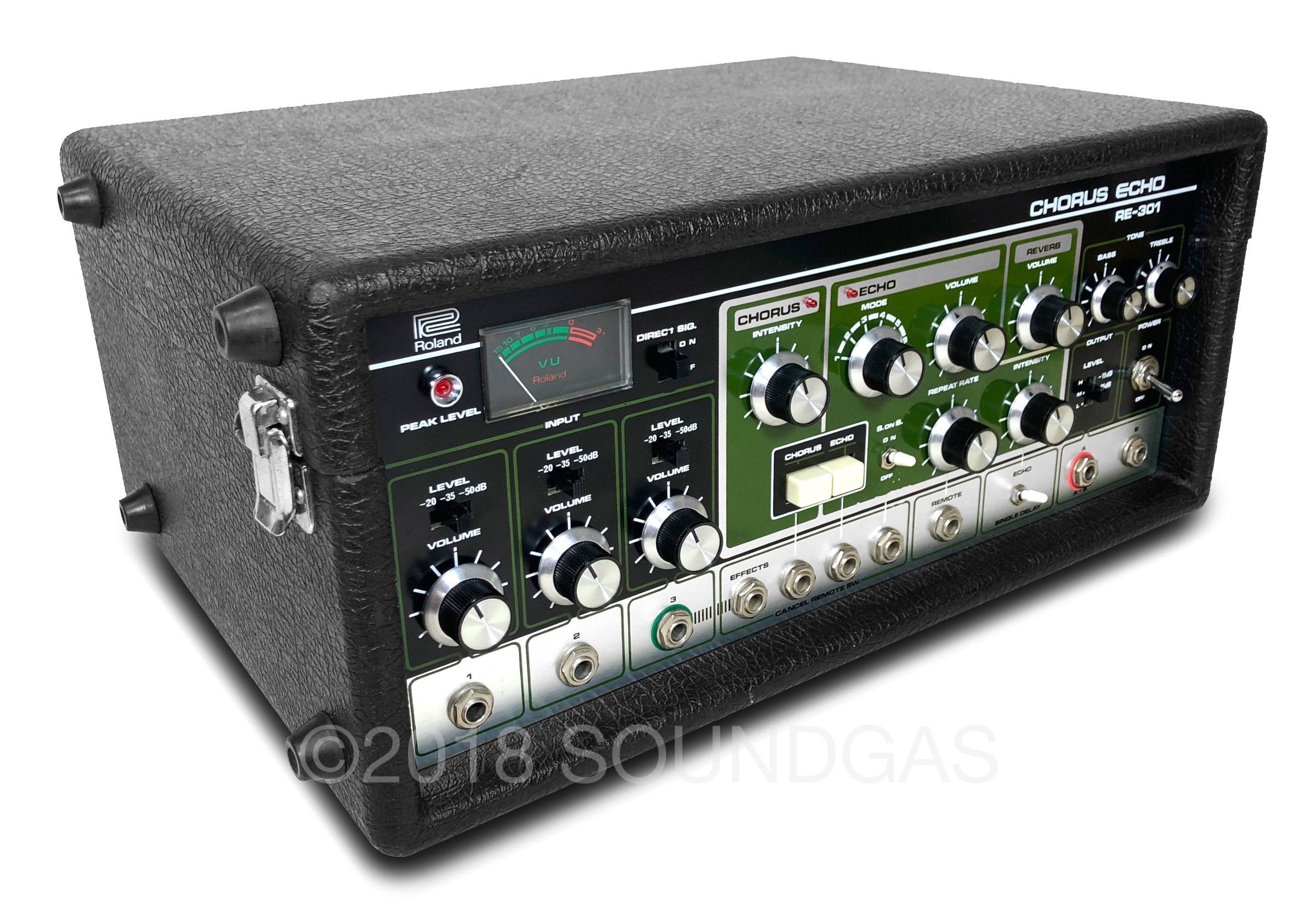 The RE-301 is a great piece of kit: the multi-head echo combinations, Accutronics powered spring reverb, Roland chorus and the Sound On Sound feature all add up to a classic piece of studio gear. A fine example of this iconic machine; Brian Setzer's favourite tape echo.
