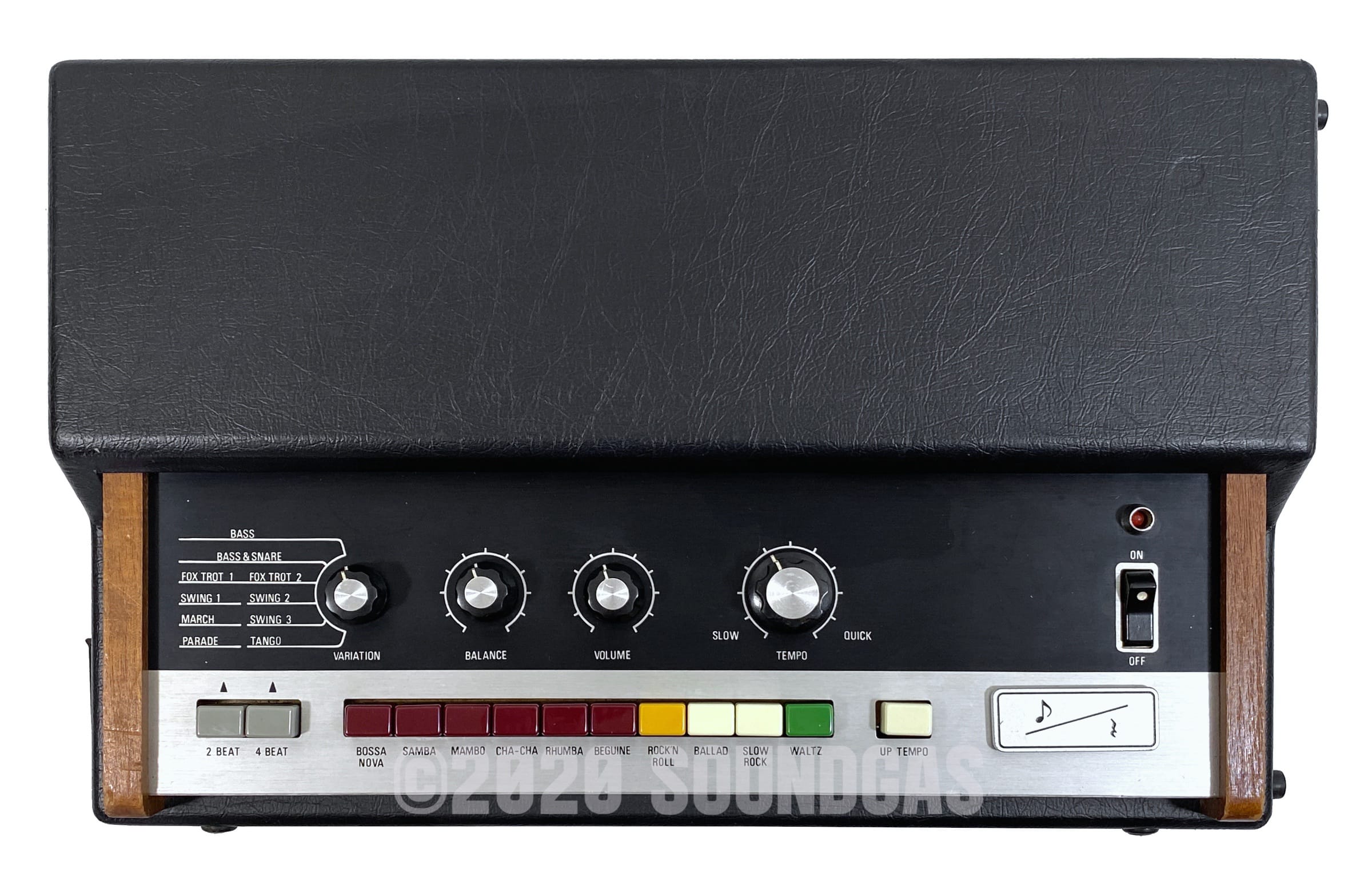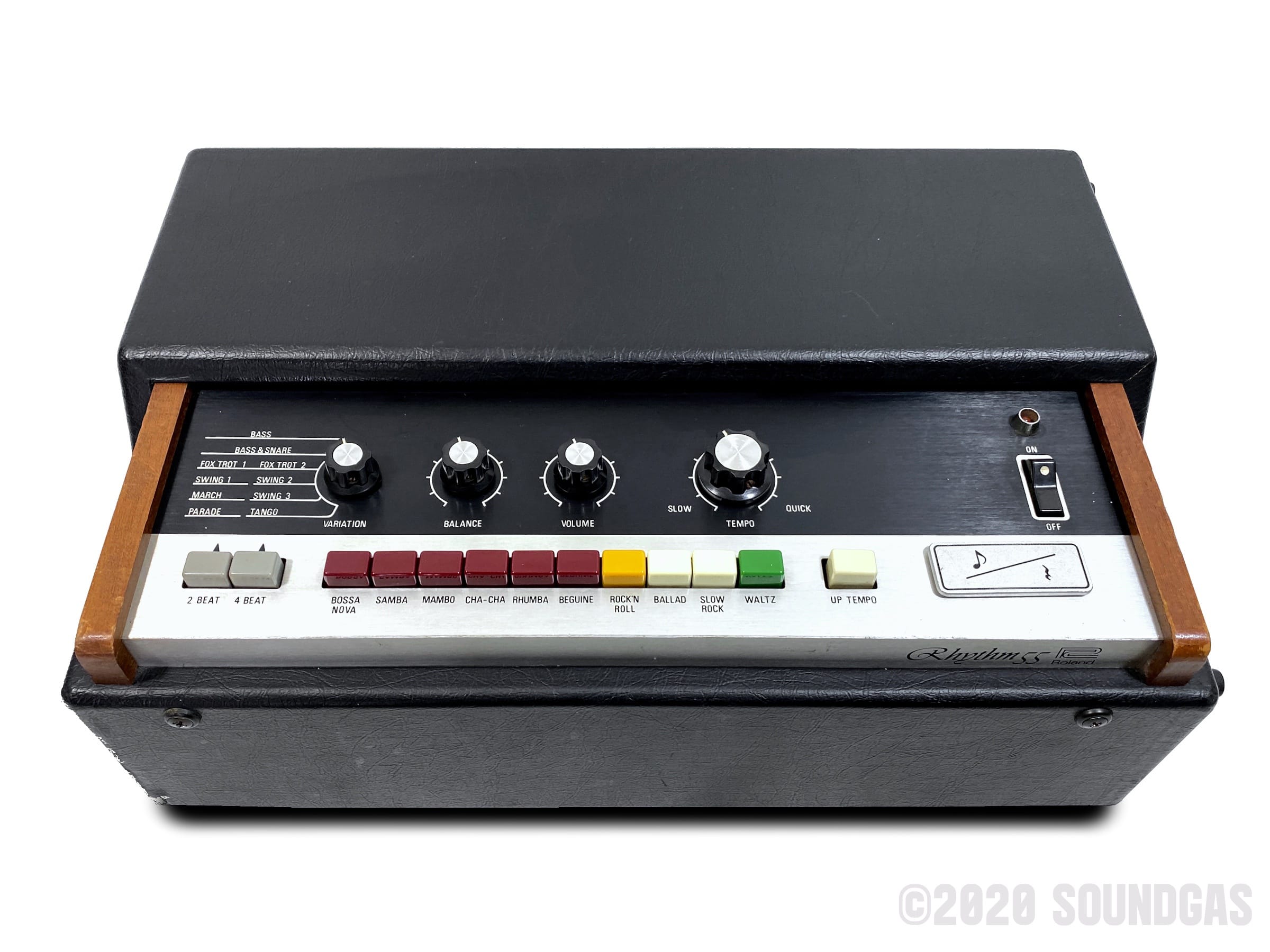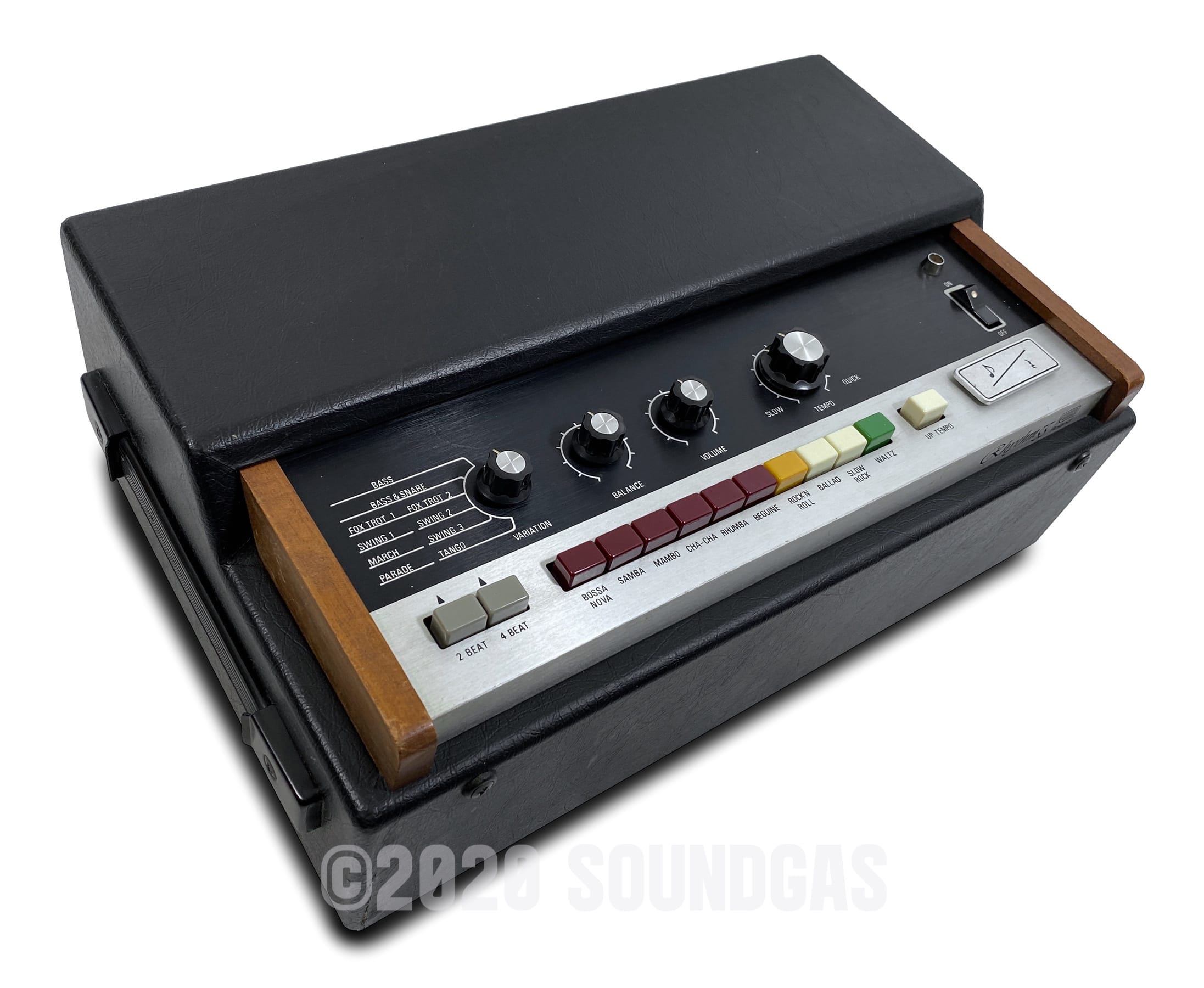 Classic early Roland beat box. The evolution of Soundgas favourite the Ace Tone FR-3, it has the addition of the “Double Time” button and a touch on/off button.