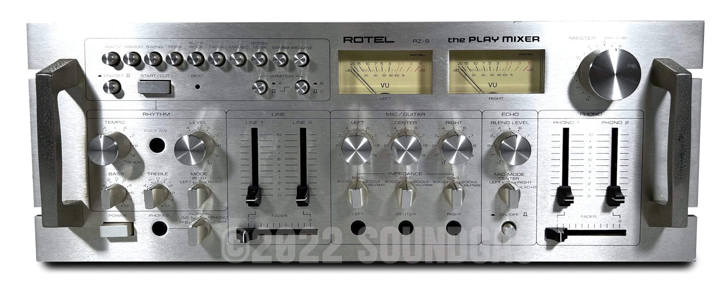 This is the HiFi separate you never dreamed existed - and never knew you wanted - until now. Yes, vinyl enthusiasts that's a twin cross-fader DJ mixer (one each for the twin line and phono inputs); there's a hefty 70s Hifi-style mic/instrument mixer with variable impedance, a basic built-in BBD echo and twin VU meters; and hell why not add in a warm and funky analogue beatbox with variable patterns to really get your party started?