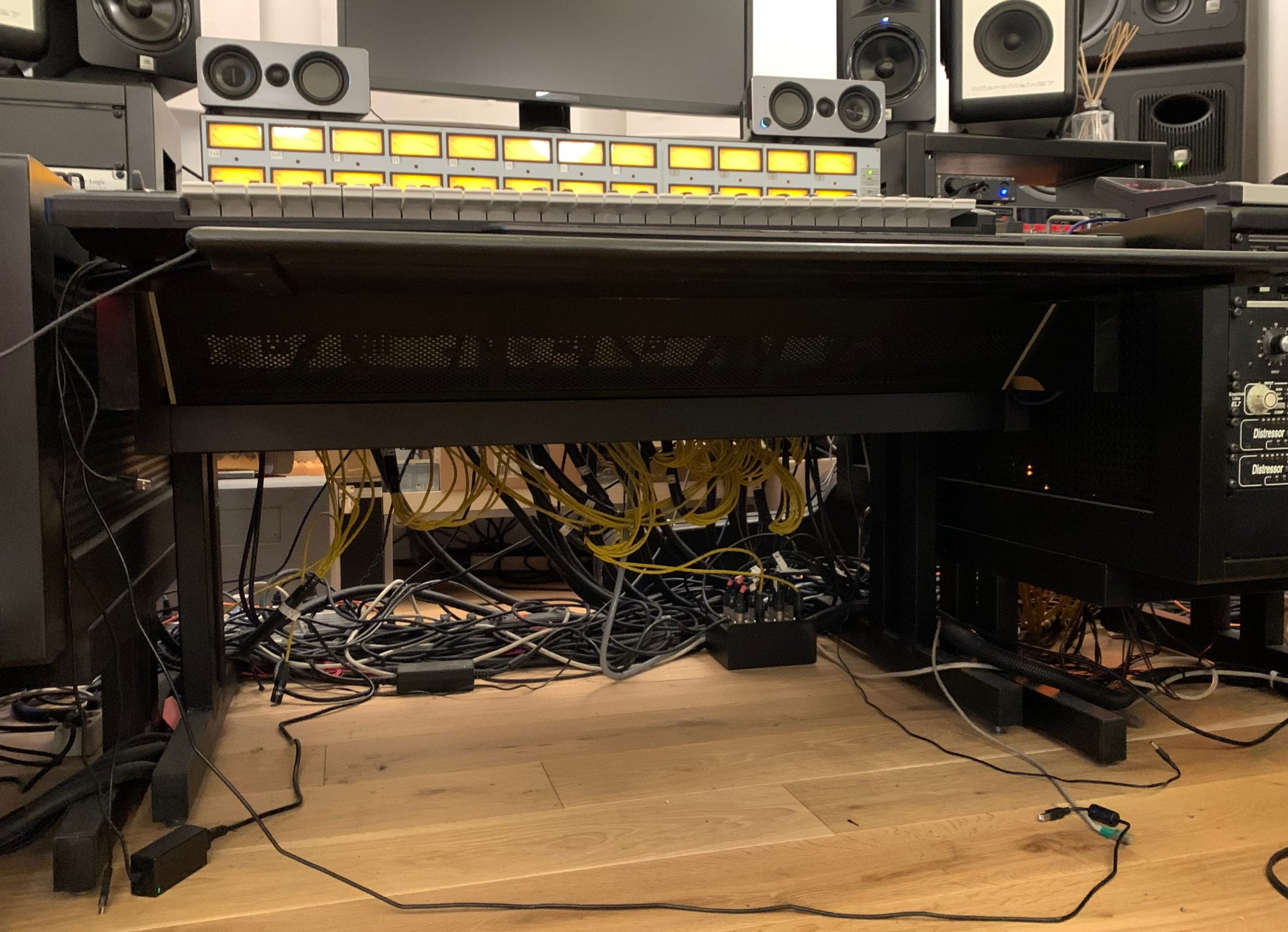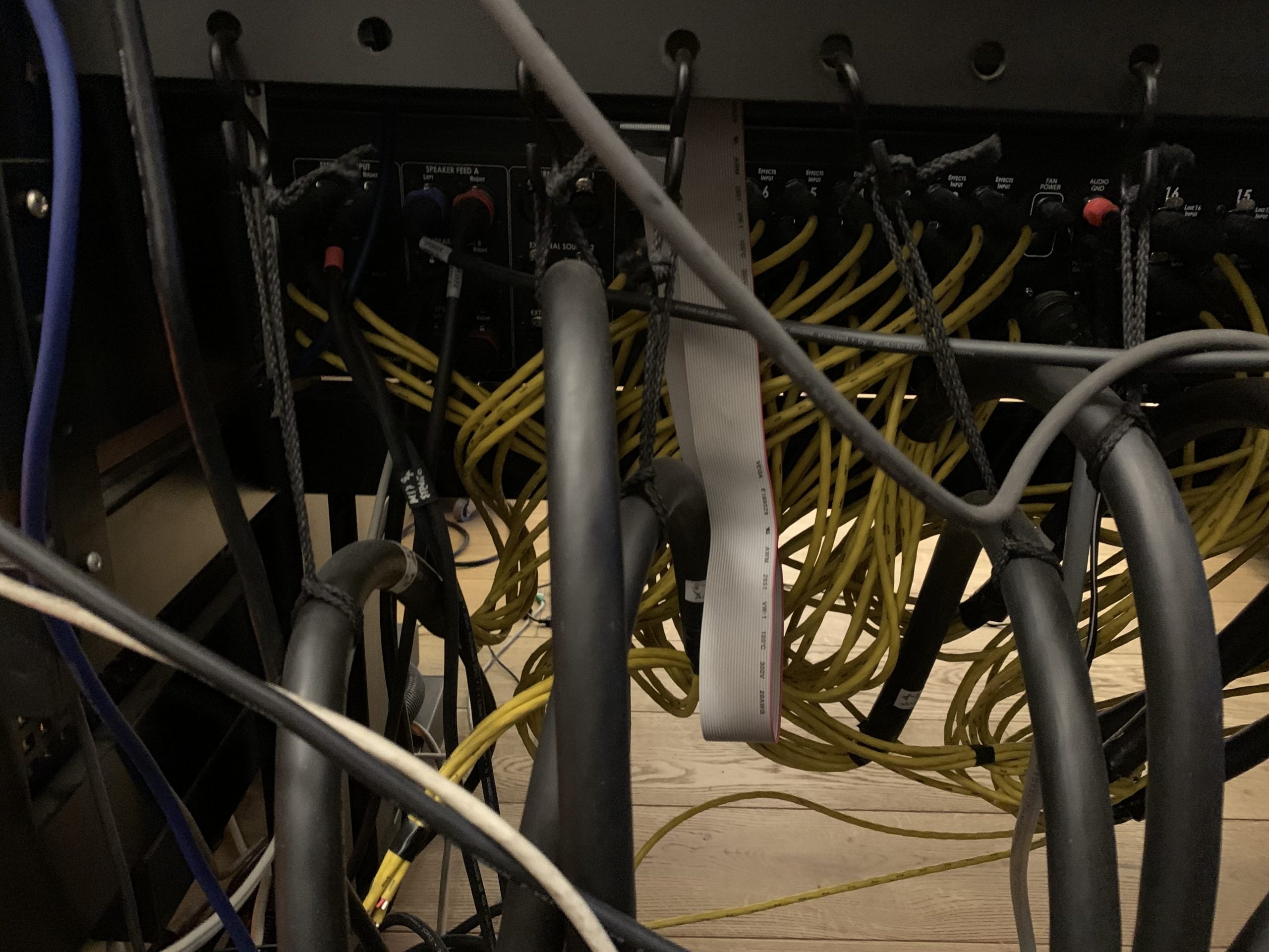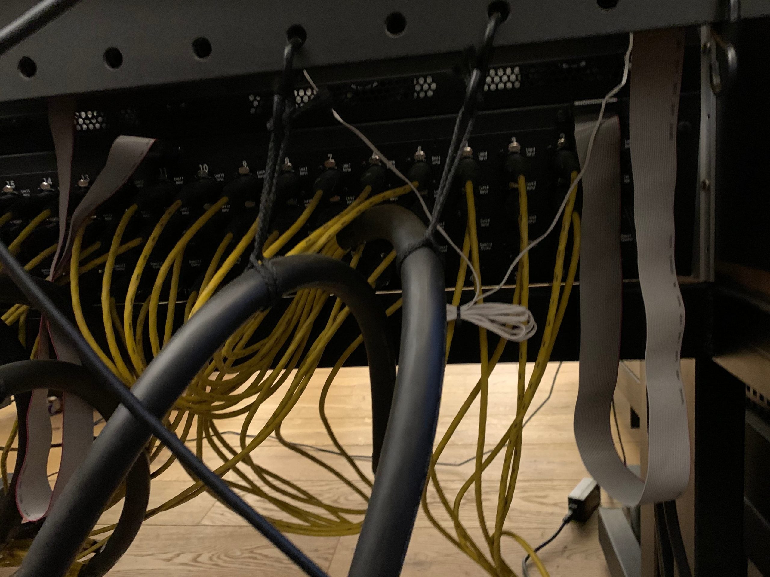 Regarding the patchbay, I have not planned/designed the audio path but as I remember most likely 3x prism ADA8 outs going normalled of some sort to the line inputs, and groups/master back to the ADA inputs... The modules of these patchbays can be pulled out from the front and can be reconfigured one by one to all options you can think of, isolated, half-normalled bottom, top, etc...