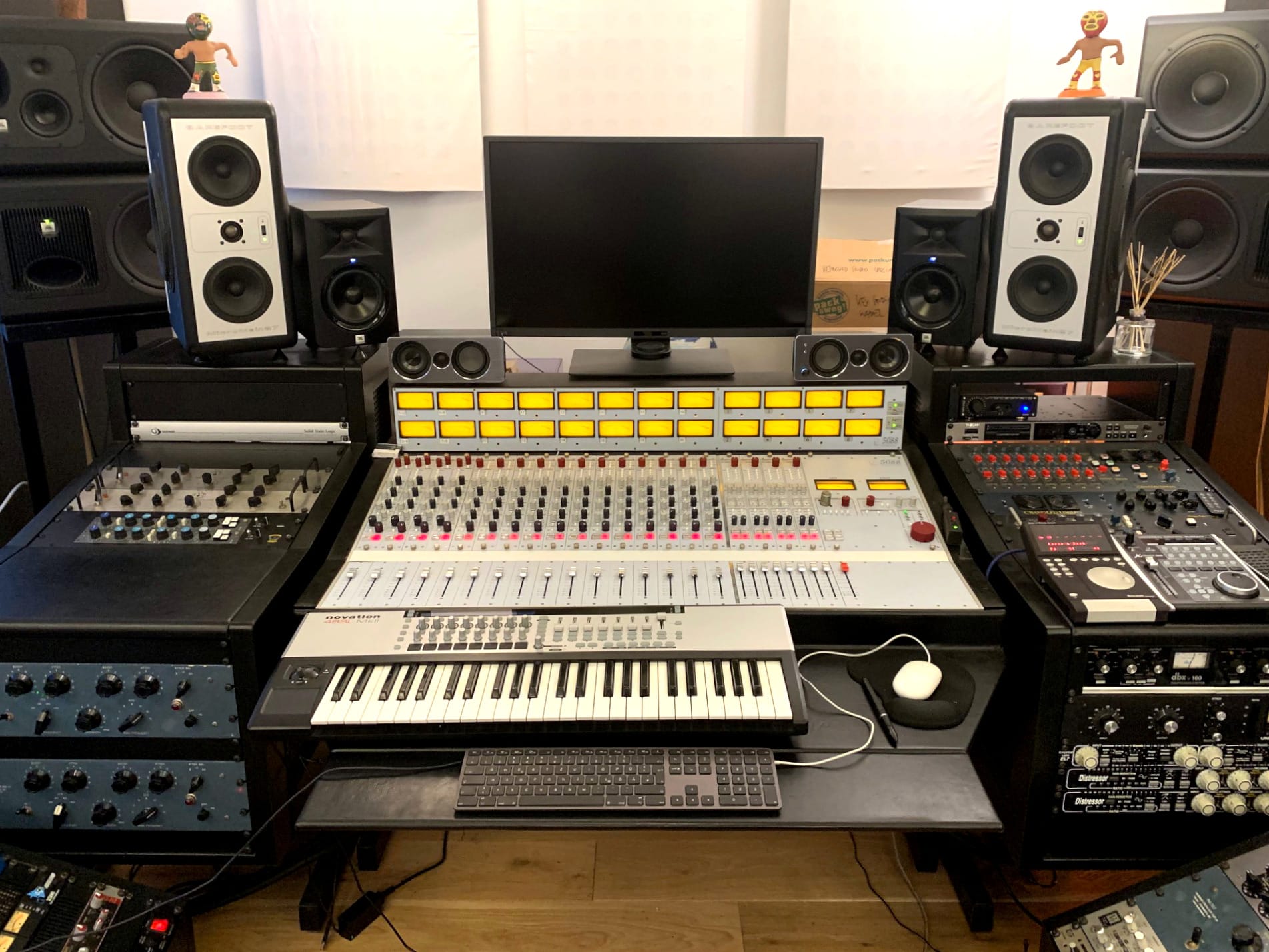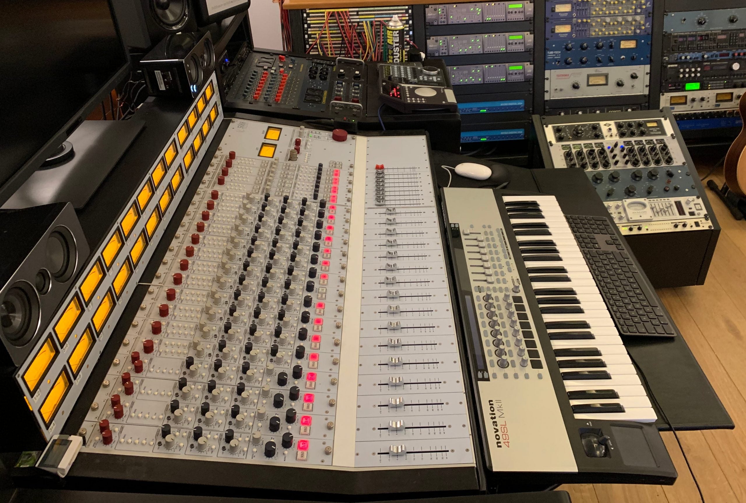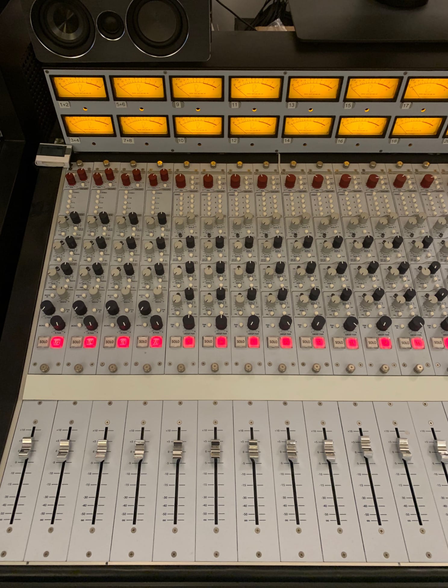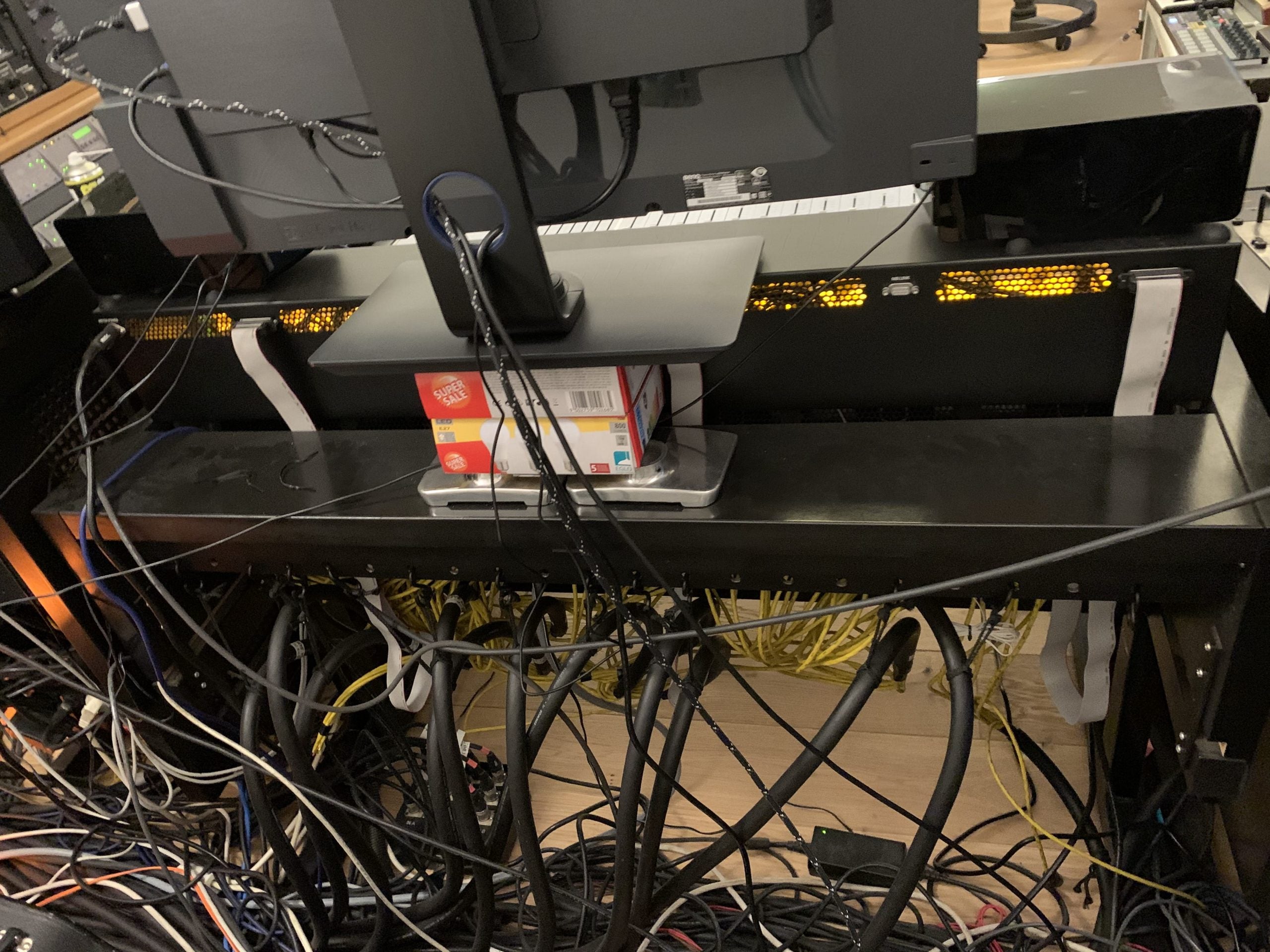 Regarding the patchbay, I have not planned/designed the audio path but as I remember most likely 3x prism ADA8 outs going normalled of some sort to the line inputs, and groups/master back to the ADA inputs... The modules of these patchbays can be pulled out from the front and can be reconfigured one by one to all options you can think of, isolated, half-normalled bottom, top, etc...