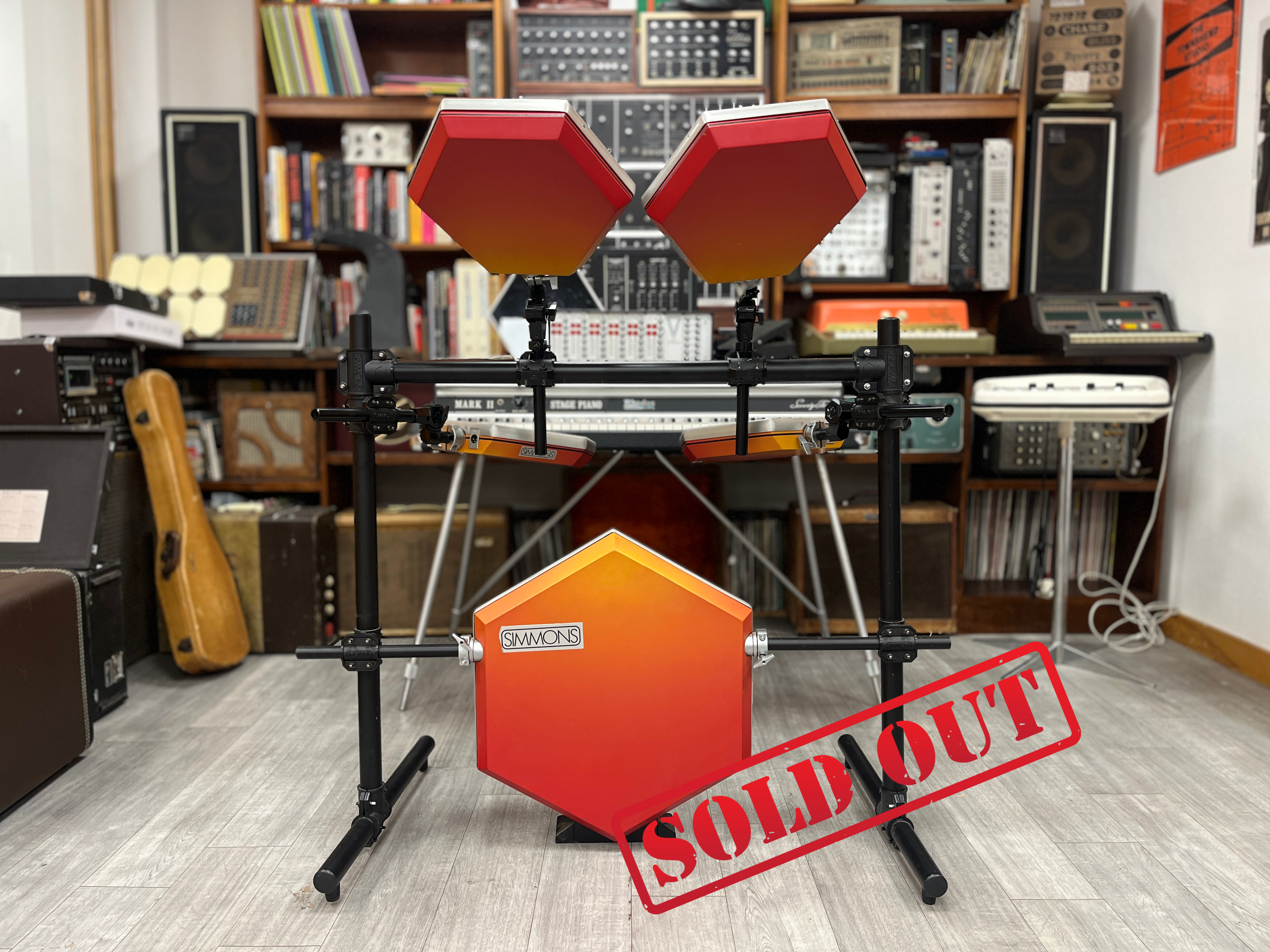 In really excellent condition overall. The kit and brain are Simmons SDS V but the stands appear to be from a later SDS 1000 kit. There is a pad and pedal for the hi-hat but no stand. The sunburst finish appears to be custom. Other than some stick markings on the pads the whole thing is in excellent cosmetic condition. See photos or get in touch for more information about this product.