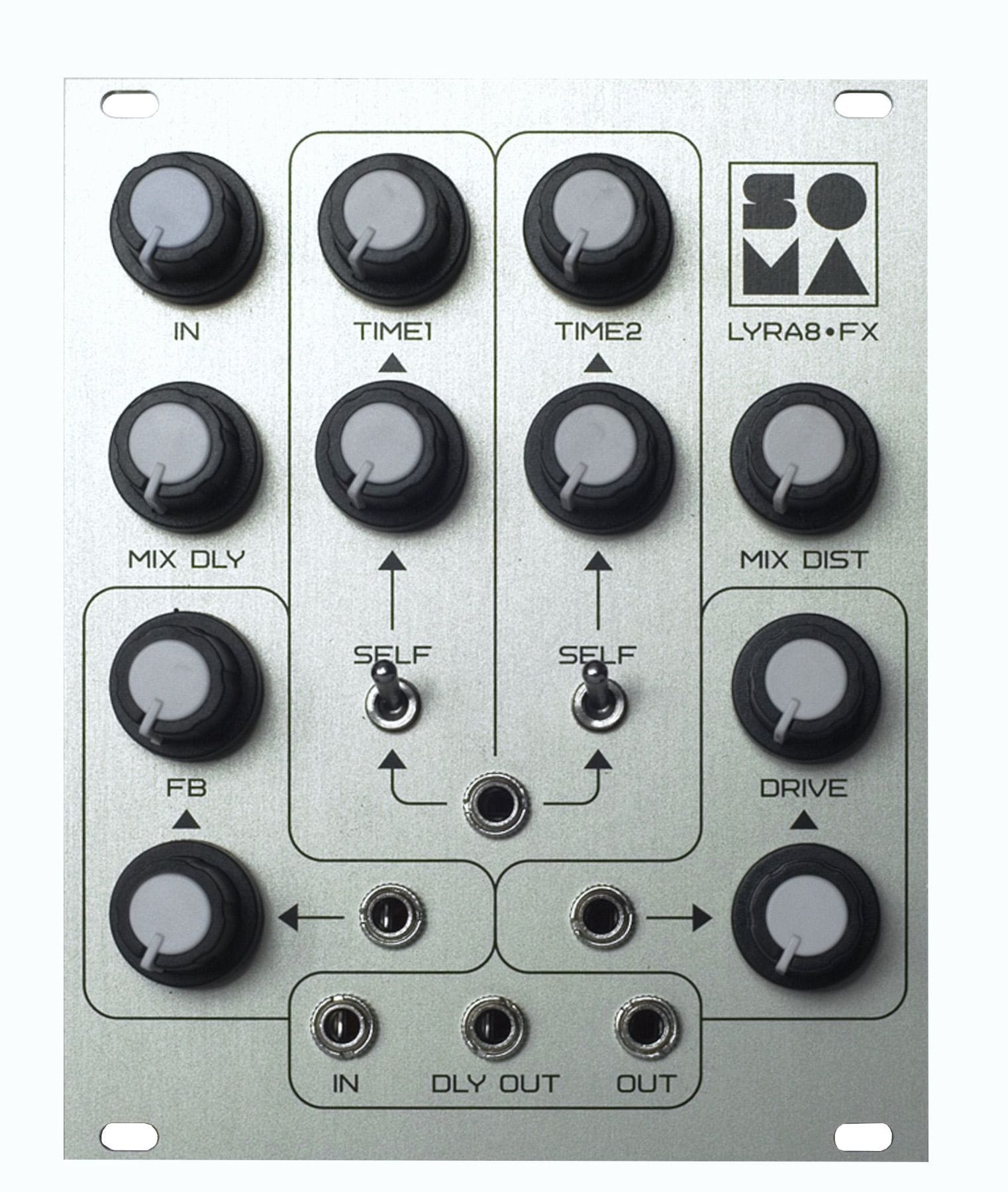 A unique double-modulated delay with distortion. Taken from the Lyra-8 synth and with added CV and a Eurorack format.