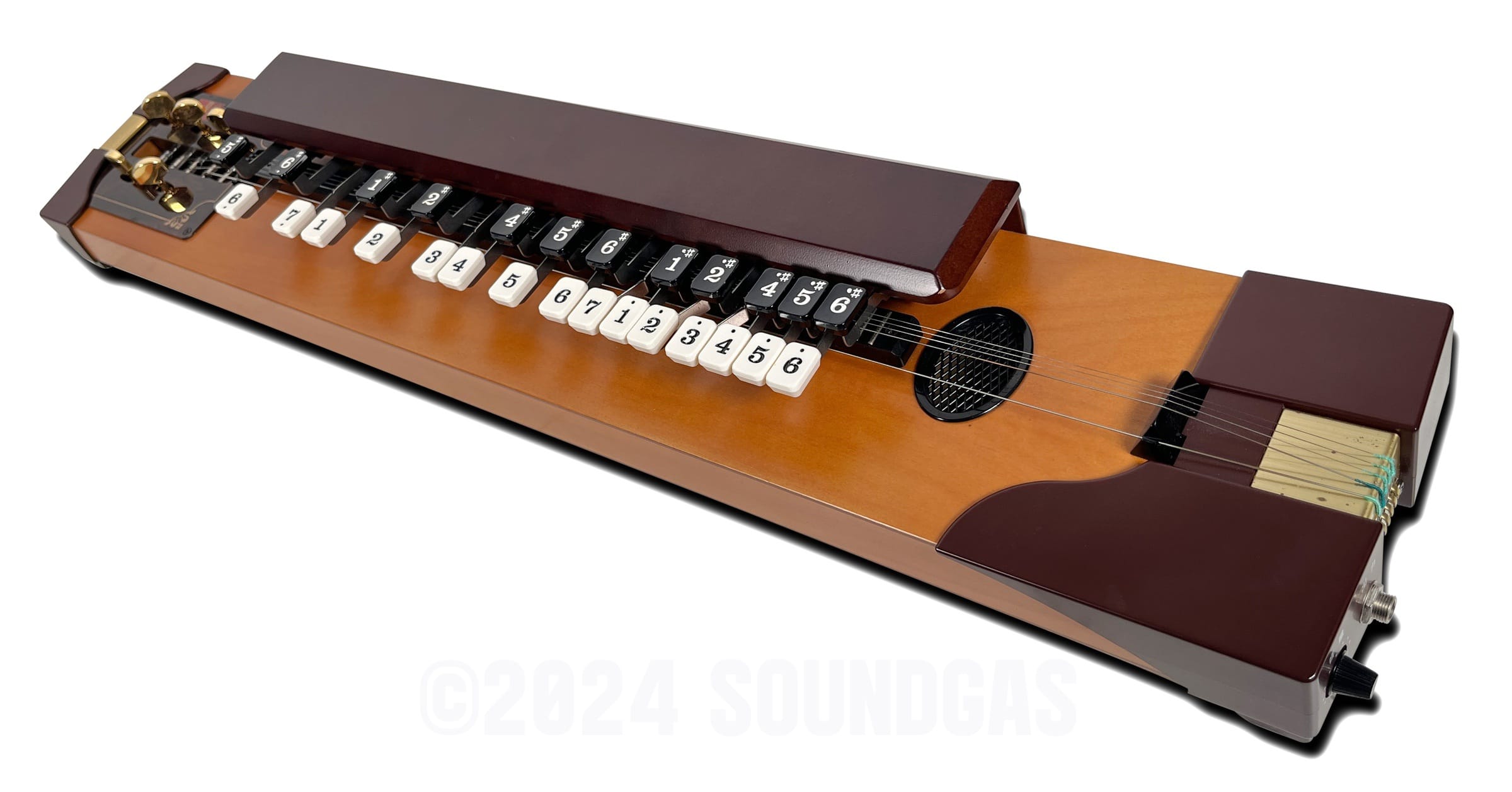 A keytar with a difference? Beautifully made, inspiring keyboard style electric ‘guitar’ which stacks up impressively with effects pedals and guitar amps.