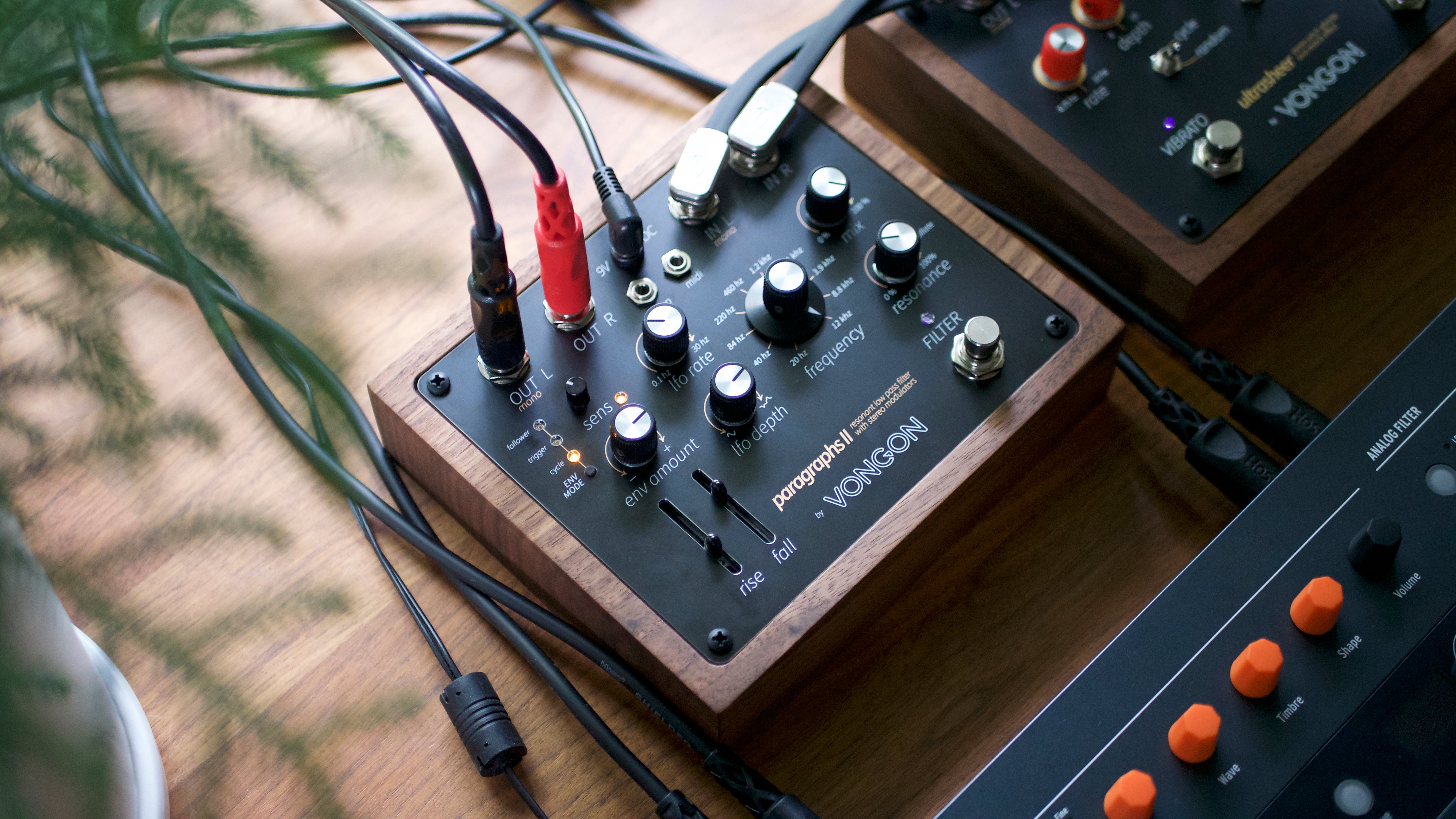 Paragraphs II is the latest generation of VONGON’s four-pole resonant low-pass filter effect. It now features stereo inputs and outputs, with a focus on modulation functions that respond to your playing dynamics and add stereo depth.