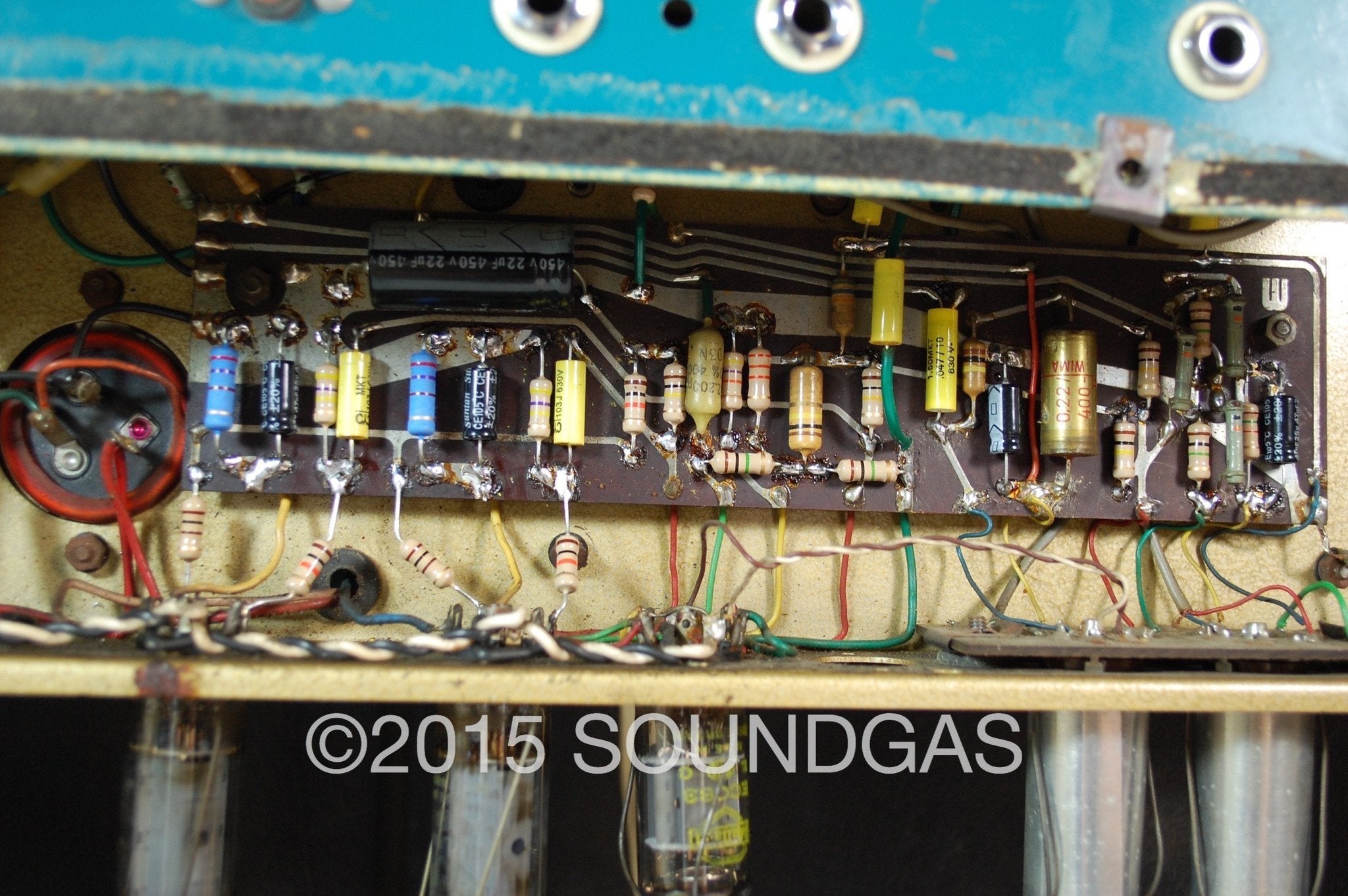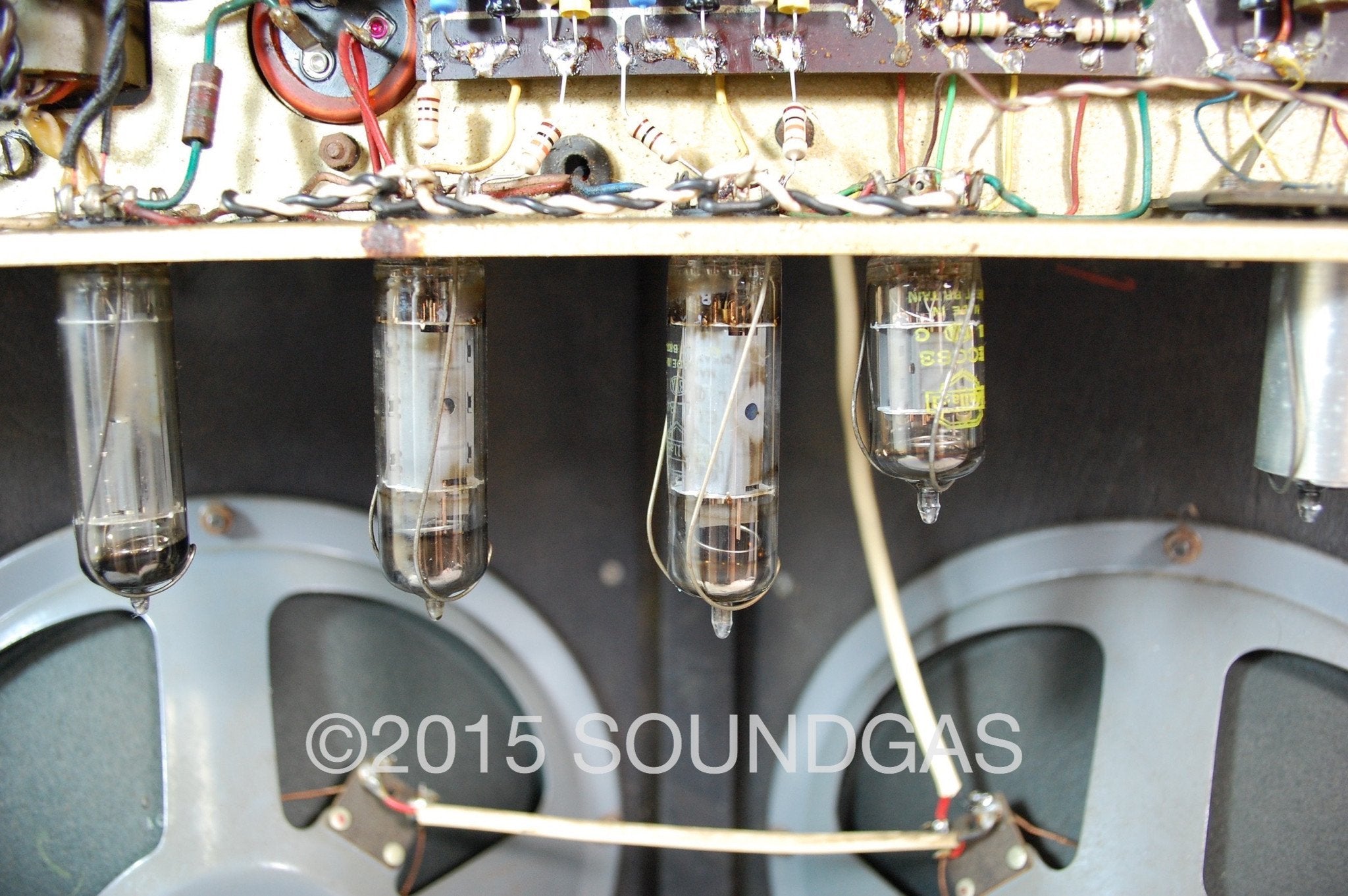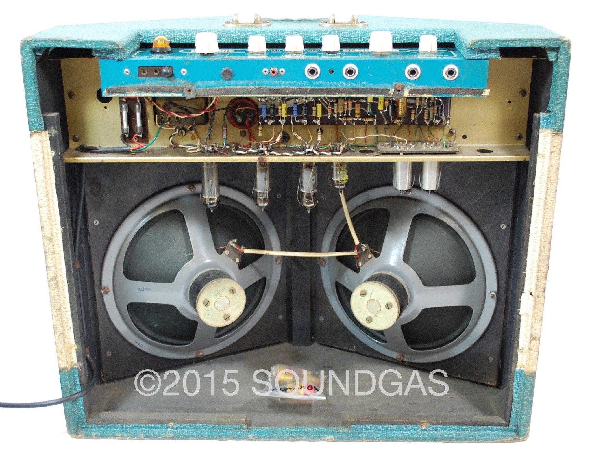 Internally, it has its original transformers and twin Elac alnico 10” speakers, mostly Mullard valves throughout, and a superb quality rewire/rebuild. These amps are now a mass of out of spec and failing components and need work to sound as they should - it now sings. Charlie said it “will work forever”, and it should do so as long as it’s looked after and serviced when necessary.