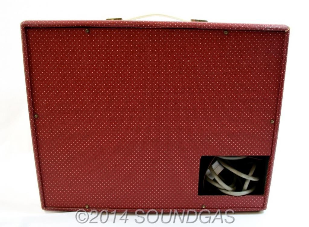 Dating from between 1959-1962, this one's really been looked-after: looking at the footswitch I doubt it's ever been out of the previous owner's home. The only flaws being missing gold inlays for the control knobs and some woodwrom holes (see detailed photos further down this description).